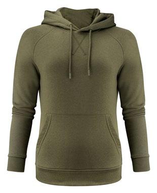 Collegetröja med raglanärmar och huva. Halvmåne i nacken. Borstad på insidan. Ribbstickade muddar.