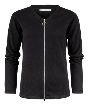 Stickad tröja med metalldragkedja i kragen. 1x1 ribb vid krage, ärmar och bottensöm.