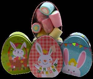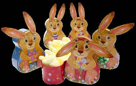 0386A Harepus bokser fylt med Påskeskum 100g kr 72,- pr stk. Min. 12.