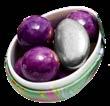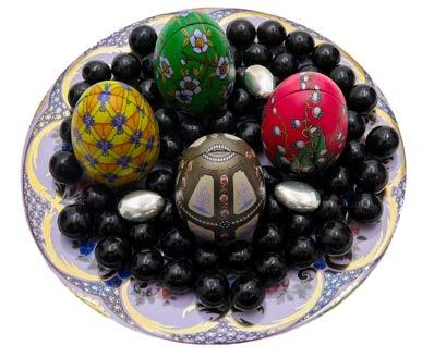 1993A Vakre Fabergé Metallegg, 36 assorterte motiver 100g kr 115,- pr stk. Min. 12. Fylt med assortert Påskeblanding.
