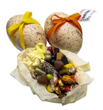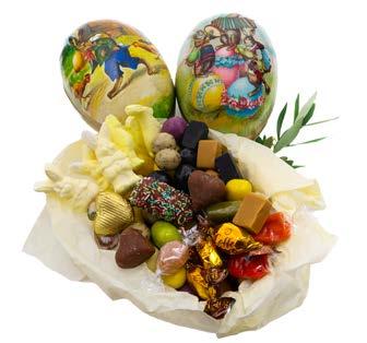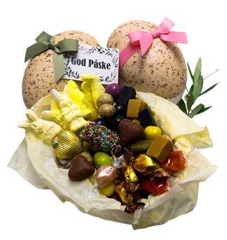 1996B Påskeegg fylt med Påskeblanding 15cm - 250g kr 149,- pr stk. Min. 12.