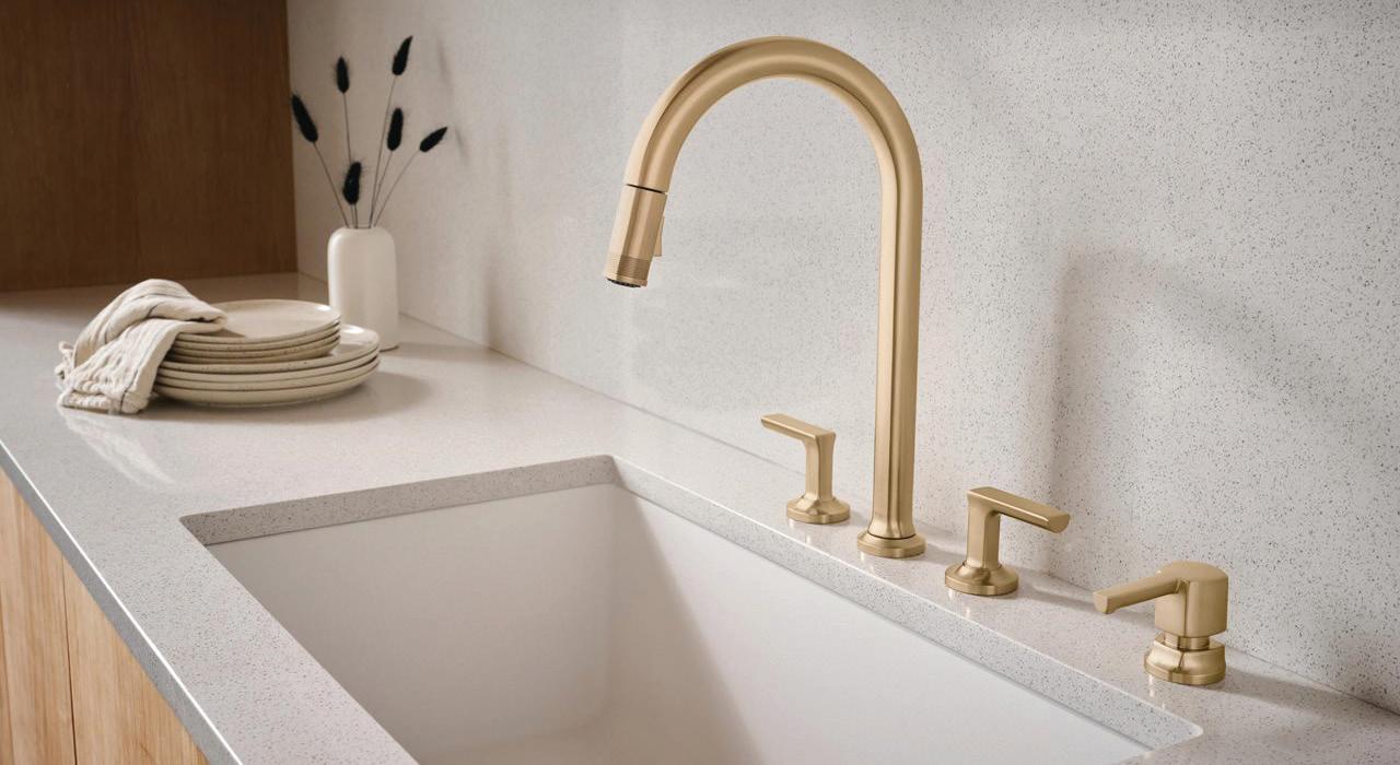 The epitome of balanced harmony can be seen through Japandi style, which artfully merges Japanese and Scandinavian design philosophies. With fluid lines that speak to minimalist sensibilities and crafted touches that reflect an artisanal soul, the Kintsu® Kitchen Collection by Brizo perfectly embodies these tenets.