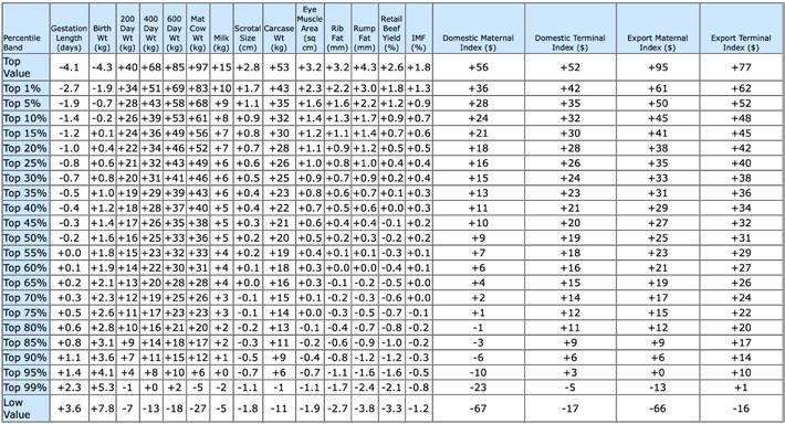 Top 10% for 200 and 400 day weight, Top 20% 600 day and Carcase weight and Top 15% for Milk.