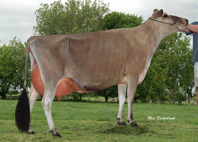 FERDON FIZZ VIYELLA EXC Born: 27/08/2019 Birth ID: CNKH-19-70 The Decision was made to put up the 4 Champions from Waikato in the 75th Celebration Sale, so it is not very often that you get the chance to buy a Viyella with a pedigree to match. The Viyella name has become synonymous with the name Ferdon and has stamped its place in the Jersey Breeds History for nearly one hundred and twenty years, right back to Lady Viola. Affectionately called “The Fizz” we offer you this cow from the Heart and Soul of Ferdon. ✪ Won her class at NZDE ✪ Genetic Realisation Winner at Te Awamutu Jersey Show (BW, PW and Type) ✪ Maternal Sister; FERDON COMERICA VIYELLA EX 7x NZDE Championships ✪ Supreme Champion Jersey & All Breeds NZ Easter Show 2006 ✪ 2012 NZDE Champion ✪ Dam of 6 EXCELLENT daughters TOWER VUE PRIME TEQUILA / HARMONY CORNERS FOZZY-ET FERDON JESTA VIYELLA EX3 CARNMOR EXPOSE JESTER FERDON FOLLYS VIYELLA EX3 MADELEY PARK JADE’S FOLLY FERDON EVES VIYELLA EX3 FERDON EVEREST Dam GrandDam Great GrandDam FERDON FIZZ VIYELLA EXC AVE MILK %P PKG %F FKG DAYS 9L 4785 3.95 189 5.51 264 288 Next Dams FERDON GOLD VIYELLA EX FERDON ELVAS VIYELLA VHC FERDON TANDRAS VIYELLA VHC FERDON GLORYS VICTORIA VHC FERDON HELENAS VICKIE VHC FERDON GLENS VICKIE EX FERDON BLUE VELVET EX The 75 YEARS CELEBRATION Sale 2024 75 AGE MILK %P PKG %F FKG DAYS 8-11 3781 4.31 163 5.85 221 237 8-0 3627 4.38 159 5.20 189 177 7-0 4978 4.34 216 6.45 321 234 6-0 5402 4.47 242 4.95 267 245 5-0 5905 4.41 261 5.98 353 260 4-0 5285 4.18 221 5.94 314 299 2-10 4825 4.40 212 5.63 272 286 Joined: 03/10/2023 Breed: PJ J16 Due: 12/07/2024 - Scanned in-calf SEXED LENCREST CASPIAN ET | BW ($) 164/50 | PW ($) 497/85 | A2/A2 AGE MILK %P PKG %F FKG DAYS 3-11 5970 4.18 250 5.68 339 237 2-11 5303 4.22 224 5.24 278 287 1-11 3697 4.30 159 5.36 198 303 S W C RA R L US FU RU FT RT TL UO DC 5 0 8 4 7 6 9 9 9 5 6 6 9 9 AGE MILK %P PKG %F FKG DAYS 10-0 4979 3.82 190 5.64 281 305 7-10 6899 4.03 278 5.19 358 305 6-10 7573 3.92 297 5.97 452 299 5-11 6898 3.88 268 6.36 439 262 Plus 4 unprinted lactations Lot FERDON FIZZ VIYELLA EXC 91