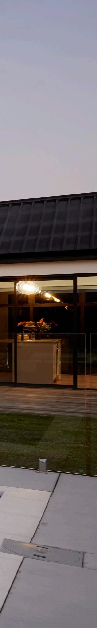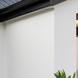 The standout exterior façade perfectly pairs raw wood textures with luxe finishes. The tranquil façade was achieved using mixed material cladding and a timeless colour palette, including Celcrete cladding in Resene Sea Fog and Dryden Horizontal Cedar Weatherboard in a shade of Walnut. The resort-style setting is accentuated by the lush green landscaping and water features that highlight the grand entrance.