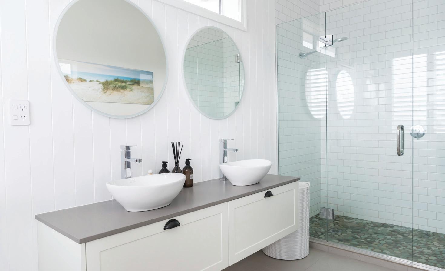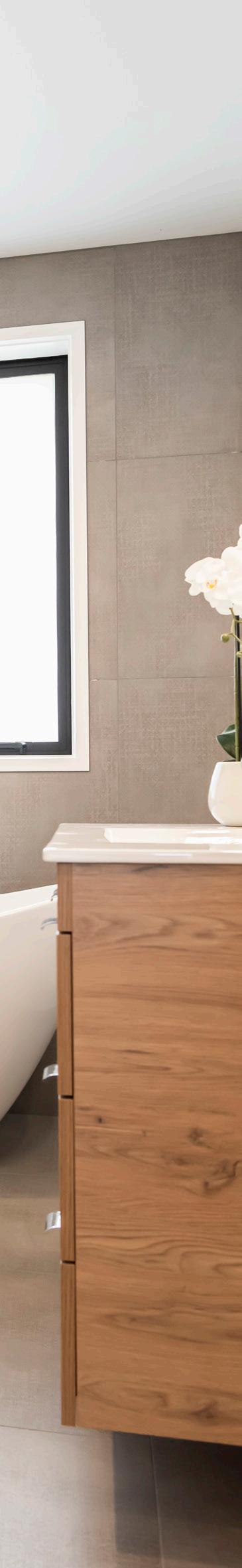 Clarissa & Marco wanted the bathroom in their new home to wow their guests. As high traffic areas, they splurged on extra tiling, a built-in shower and a feature bath, which all elevate the space.