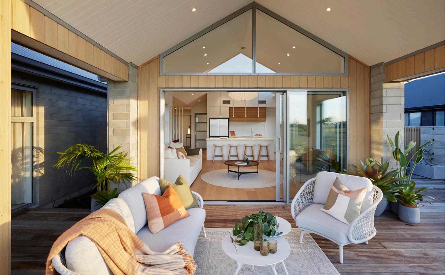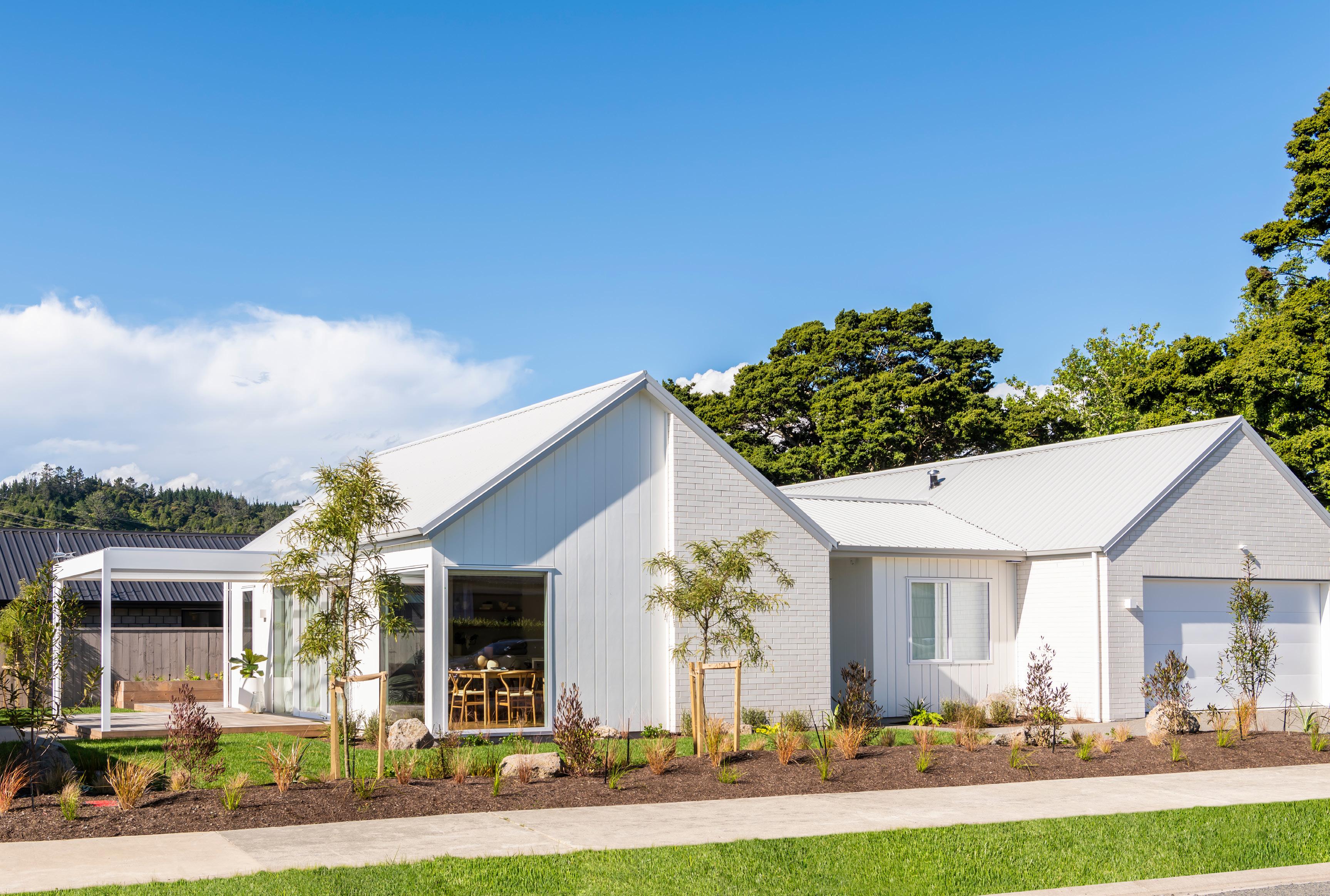 Designed to reflect a welcoming coastal-inspired abode, the Huapai design perfectly celebrates nature and a connection with the outdoors. Featuring a minimal tonal colour palette of crisp white, paired with stunning wooden accents to further accentuate the modern coastal look.