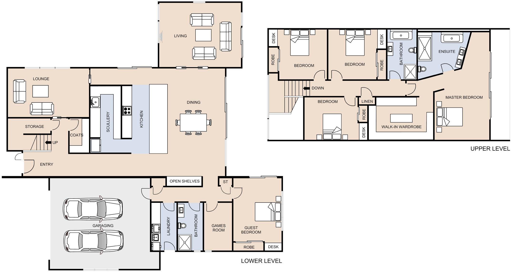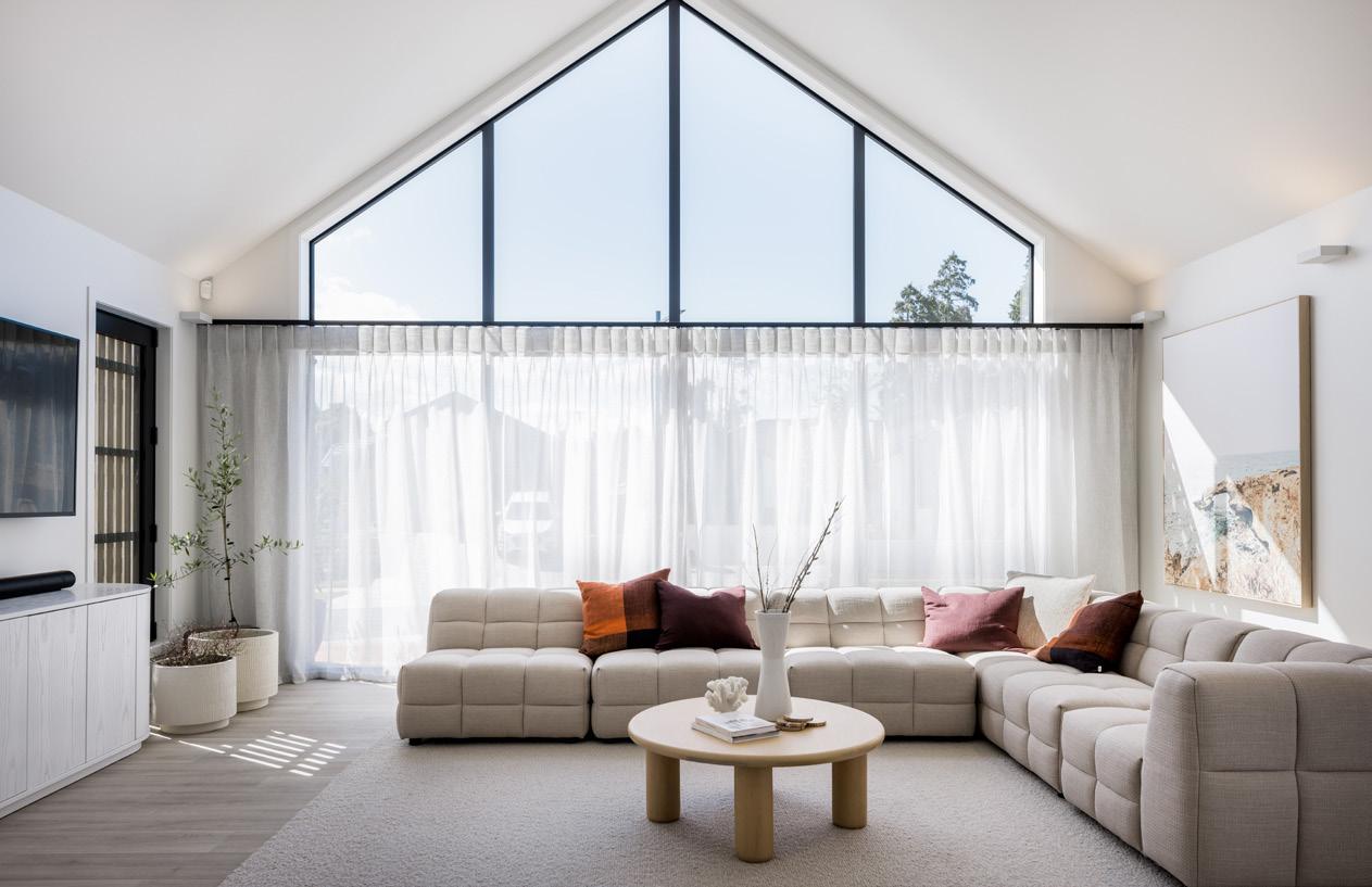 The couple’s list of must-haves included a powder room, separate laundry, high quality finishes, raked ceiling and spacious airy interiors.