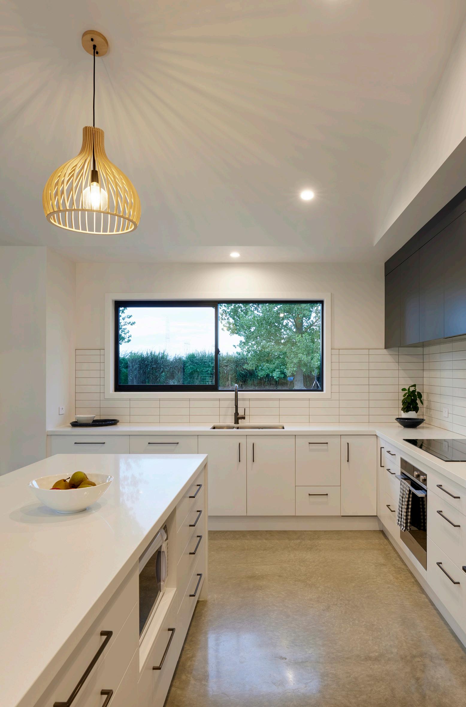 The couple decided to save on their exterior cladding with a simple white brick, which gives the home a classic and hardwearing look. This allowed them to splurge elsewhere, including an impressive covered outdoor area, a larger kitchen with open shelves and a walk-in pantry, plus extra-large windows throughout the home.