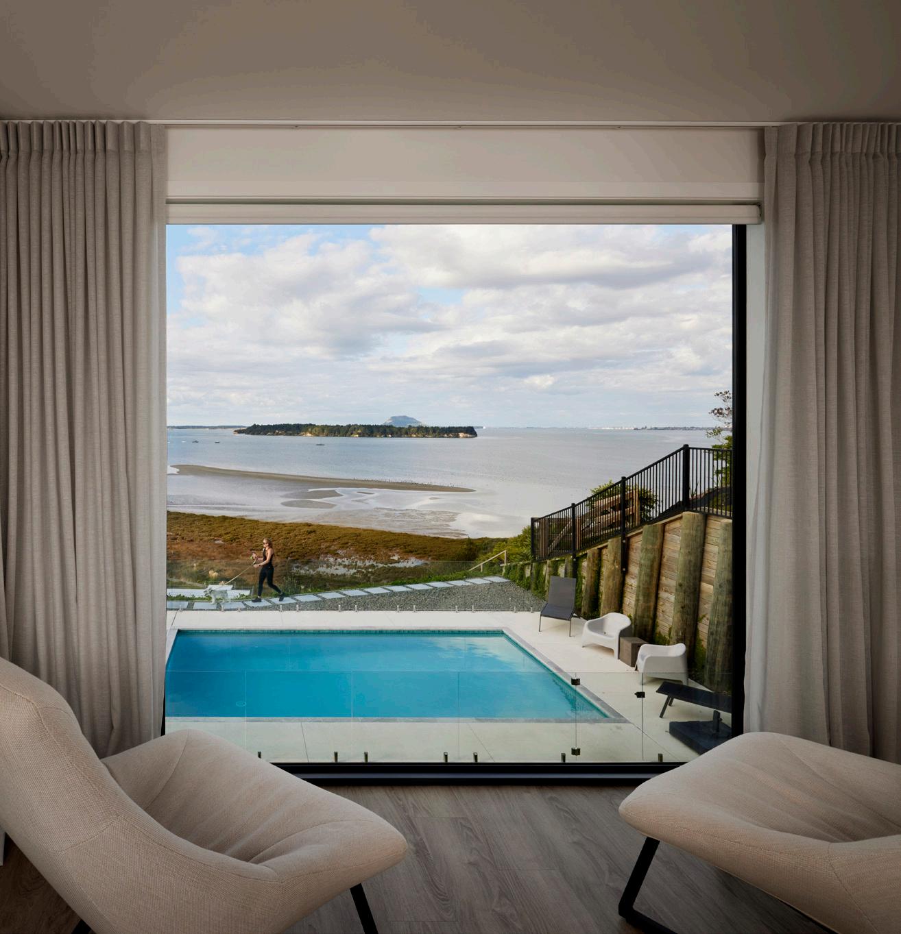 When the owners of this jaw-dropping home in the Bay of Plenty decided to move on from their terraced house in popular Mount Maunganui to embark on their building journey, they knew they wanted to make the most of the opportunity for extra space. Taking inspiration from the Seaview plan, the design was tweaked slightly to suit the family's needs while the interior and exterior takes on a completely different look and feel. Impressive vintage oak flooring carries through the kitchen, dining and living areas to create a seamless entertaining space. Huge sliding doors open to reveal an outdoor living area like no other - complete with gas fireplace and level-entry to provide uninhibited indoor/outdoor flow. A pool overlooking the large section and water views completes this family home.
