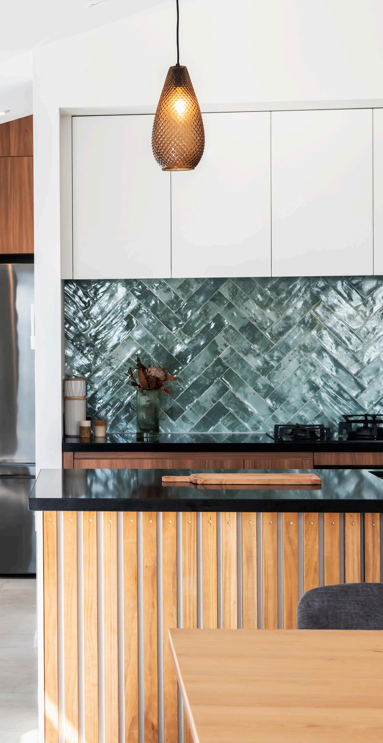The home is full of thoughtful design features that add a striking visual appeal to the interior style, with Abodo Vulcan Screening on the kitchen island and Abodo Panelling in the entranceway and casual living space.