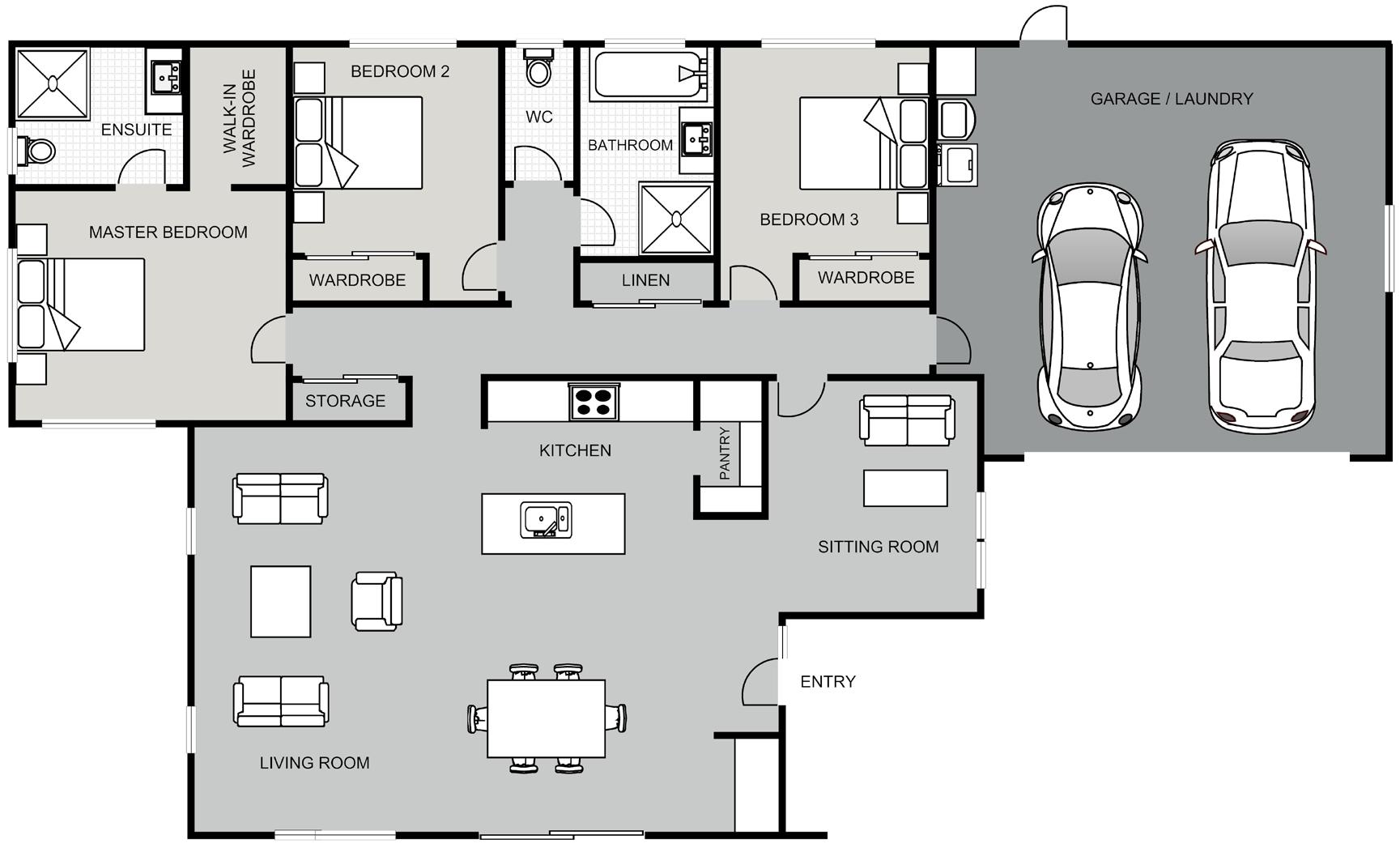 The Shoebridge plan is the epitome of low-maintenance living, with all the modern comforts in mind. It captures all-day sun, allowing the central openplan living spaces are adorned with abundant natural light and are cocooned by three bedrooms all with their own ensuite.