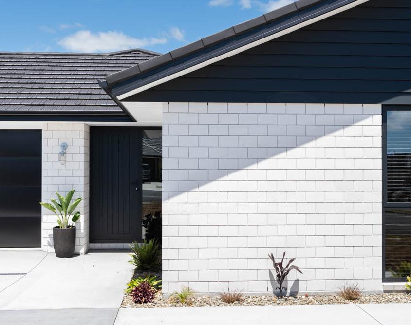The exterior features a combination of white brick and Horizontal Lineaboard in Resene Whitewater from James Hardie, adding a sense of texture and giving this home a natural and elegant feel.