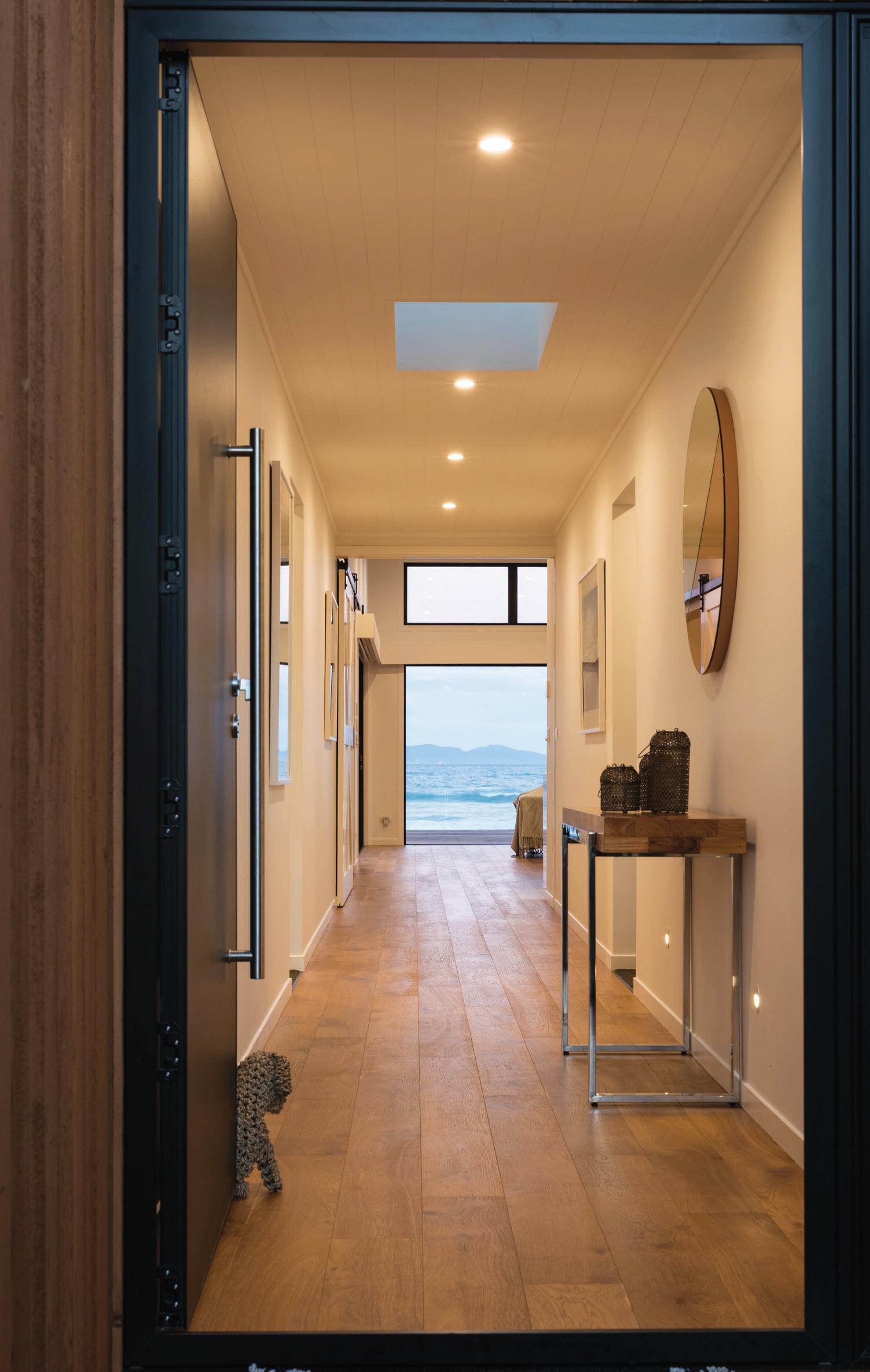 As you walk through the front door of the Parkland plan, you're welcomed by a wide hallway, with feature glass windows framing the garden and adding a natural element to the home.