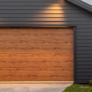 The home's exterior features a statement brick laid in a cobbling pattern to create a more dramatic effect. Combined with Vertical Truwood weatherboard on the entrance and outdoor living porticos to create contrast and complement the natural surroundings.