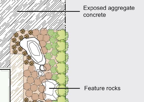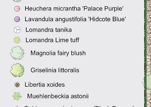 The new driveway will create a welcoming entrance, using hedging and a formal garden. The clothesline is thoughtfully placed, tucked away from view, surrounded by fragrant gardenia shrubs.