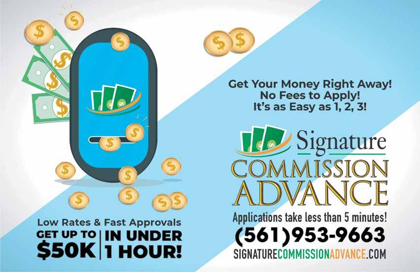 • Attorney Owned & Operated • Team of Knowledgeable Professionals • Convenient & Smooth Transactions • We Mind The Details, So You Don’t Have To Gregory S. Gefen, Esq. Managing Attorney 561.988.0088 (ext 203) • Greg@GefenLaw.com SIGNATURE SUBSIDIARIES & PARTNERS NMLS #2275047 www.nmlsconsumeraccess.org (561) 532-5112 SignatureChoiceMortgage.com Conventional/FHA/VA • Jumbo Loans Bank Statement Loans • Construction Lending Renovation Loans • Foreign National Loans Asset Based Income 1801 North Military Trail Suite #203 • Boca Raton, FL 33431 (561) 988-0088 | SignatureTitleGroup.com