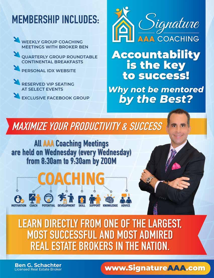 © 2023 The Signature Real Estate Companies. All Rights Reserved. Broward, Palm Beaches & St. Lucie REALTORS® 2016, 2019 & 2020 Broker of the Year (Mega Office) 2016 & 2017 Southern Region Vice President 2015, 2016 & 2017 Board of Directors 2014 REALTOR® of the Year 2014 Humanitarian of the Year Florida REALTORS® Director 2014, 2015, 2016, 2017, 2018, 2019, 2020, 2021 & 2022 Ben G. Schachter, Broker / President Ben@SignatureFlorida.com | 561.302.9099 EXPERIENCE THE WHY CHOOSE SIGNATURE? Privately Owned & Operated, Local Firm 20 Office locations throughout Broward & Palm Beach Counties, Naples, Orlando, Washington State & Idaho 1,600+ Real Estate Professionals 40+ Full-Time Managers & Trainers 7,500+ Transaction Sides Annually Over $1 Billion Transaction Volume Annually with Projected 25%+ Sales & Rental Increase each year In-House Compliance, Training, Legal, Marketing, Social Media, Search Engine Optimization, Special Events, Customer Service, Accounting & Bookkeeping, Human Resources, Information Technology, Web Design, Project Management, Consulting, Business Planning & Tax Planning Countless Free Services & Benefits Healthy & Rewarding Work Atmosphere Free Promotional Materials Aggressive Commissions Industry Leading “Agent Centric” Culture Full Service, Licensed & Insured: •30+ Different Companies within 1 Organization •Residential & Commercial Brokerages •Fully Accredited Real Estate School •Attorney Owned & Operated Title Company •Insurance Agency •Construction •Swimming Pool •Senior Placement Agency •Mortgage Lending •Background Screening •Commission Advance •Real Estate Photography •Moving & Storage DIFFERENCE