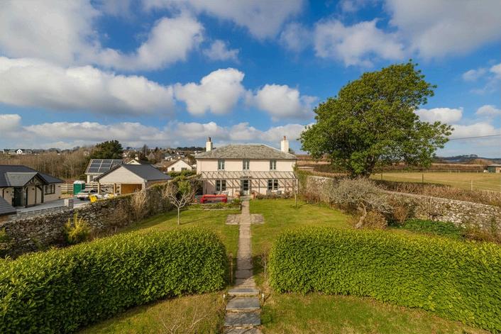 Greenslade is approached via a sweeping gravel driveway with a circular turning circle, creating an elegant sense of arrival while providing ample parking To one side, there is further space for several vehicles, ensuring both practicality and ease for family living or entertaining.