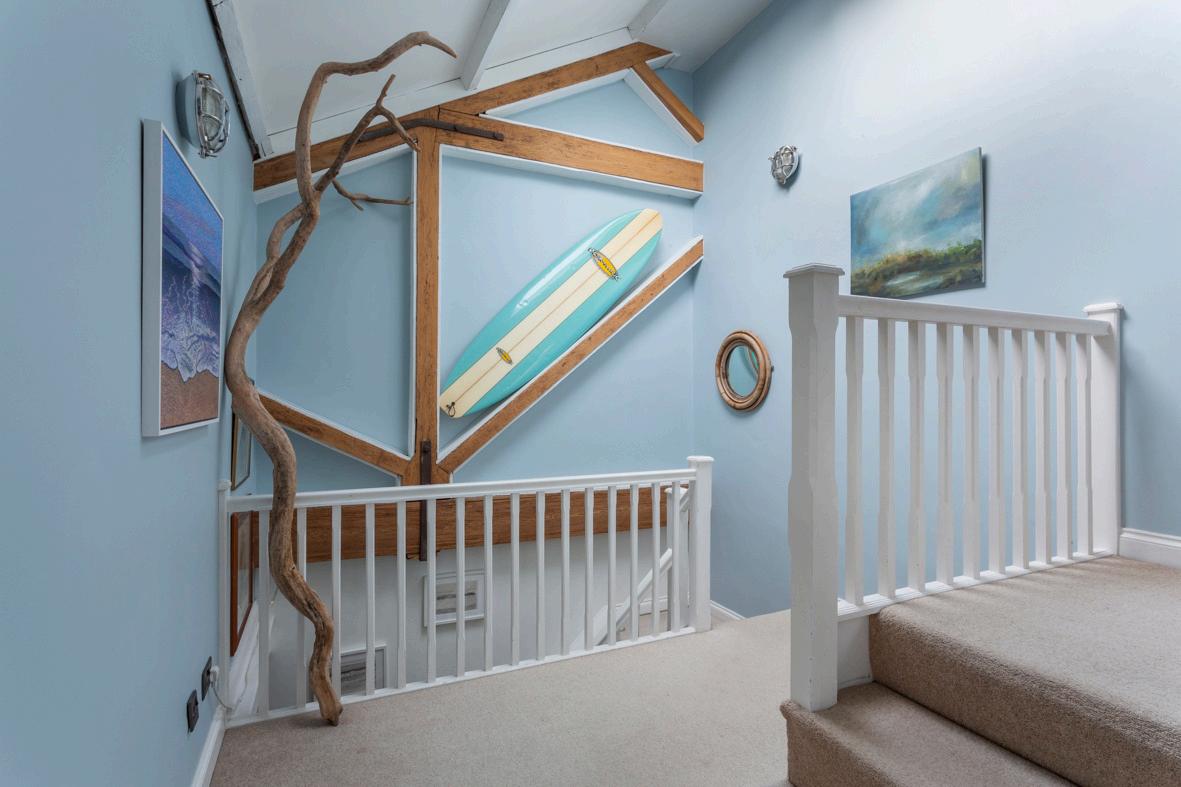 A substantial utility room doubles as a second kitchen and offers extensive storage, including space for large appliances like an American-style fridge A mezzanine level within the utility room provides even more storage space, ideal for family belongings, from laundry to outdoor gear like paddleboards and wetsuits.
