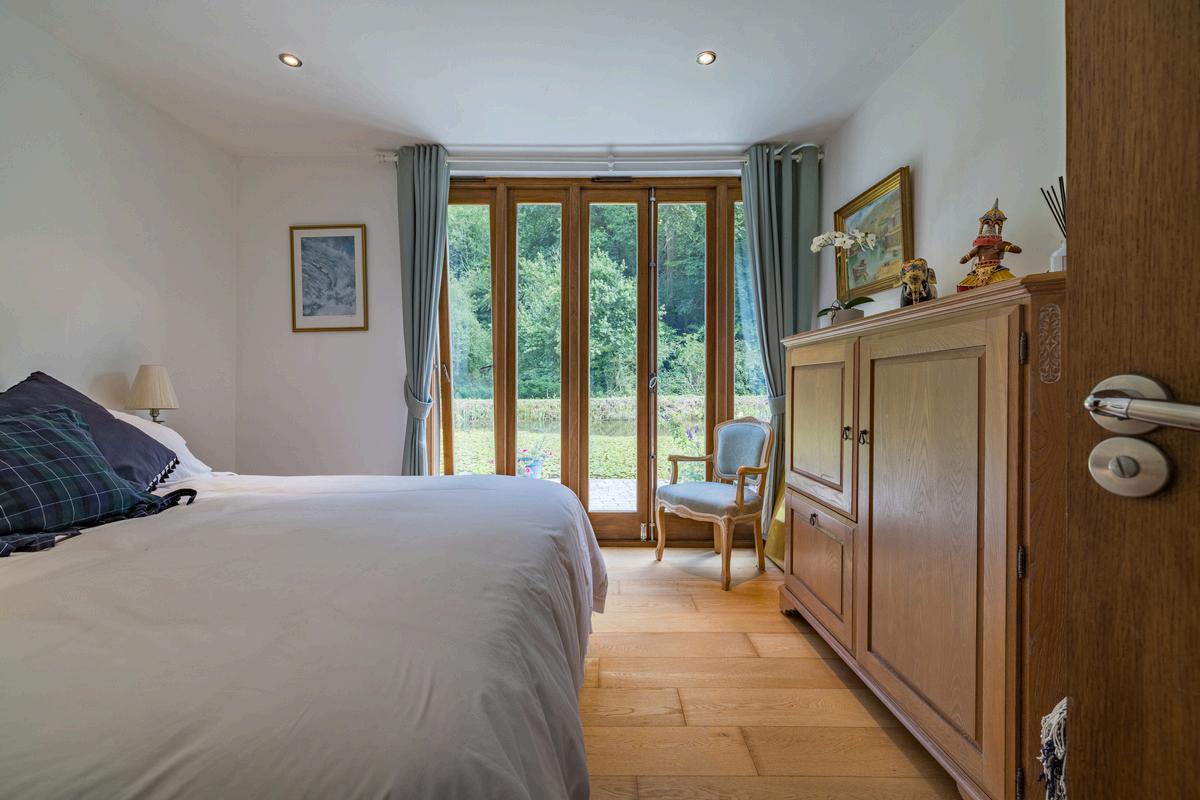 Two double bedrooms are located on the ground floor, with both offering French doors that open to the lakeside terrace and one complete with an en-suite bathroom.