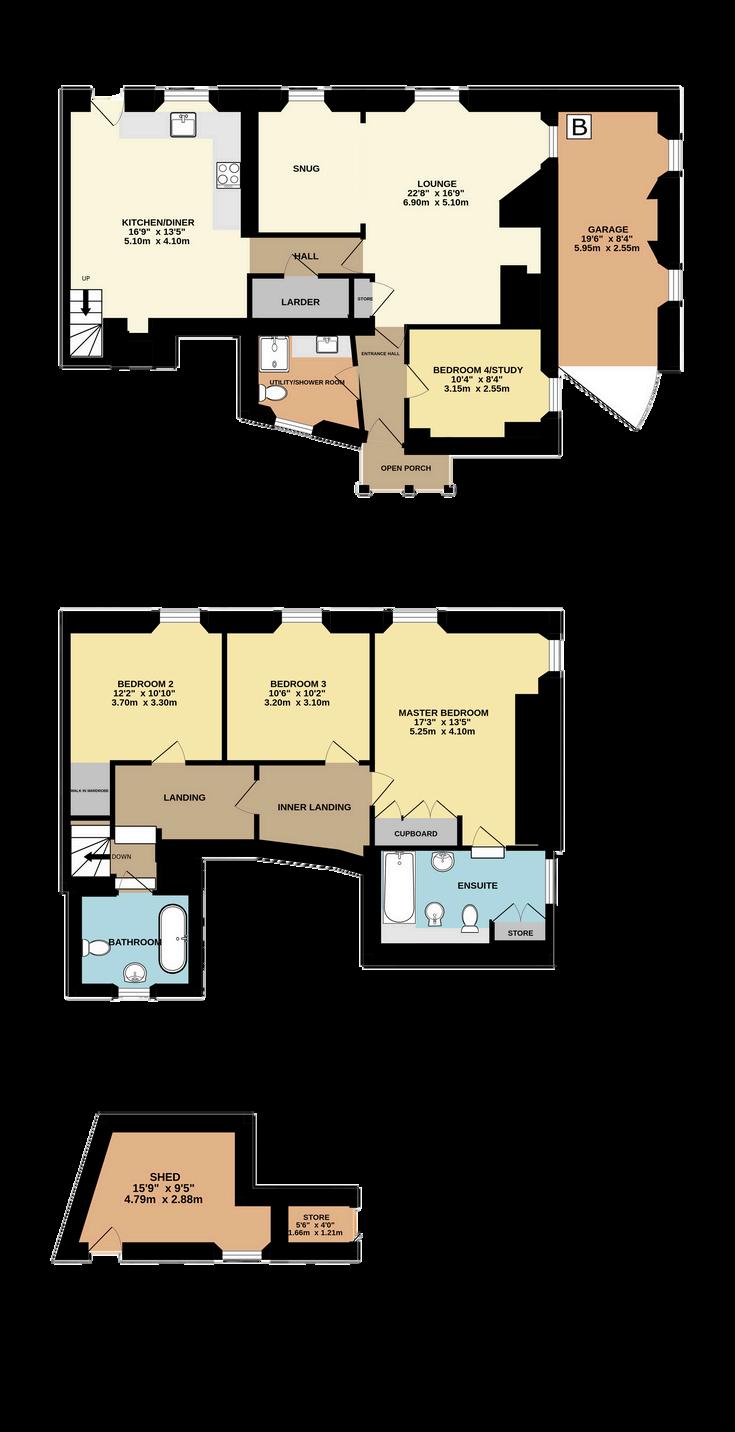 Upstairs the master bedroom suite is bathed in natural light from its dualaspect windows and features a superb en-suite bathroom Two further bedrooms and a family bathroom are connected by a generous landing, wide enough to accommodate bookshelves and to create a useful study area