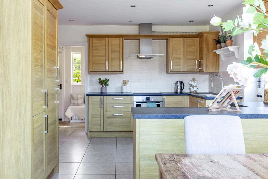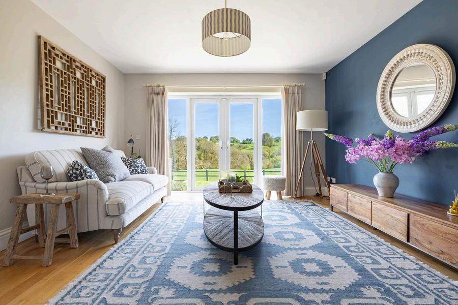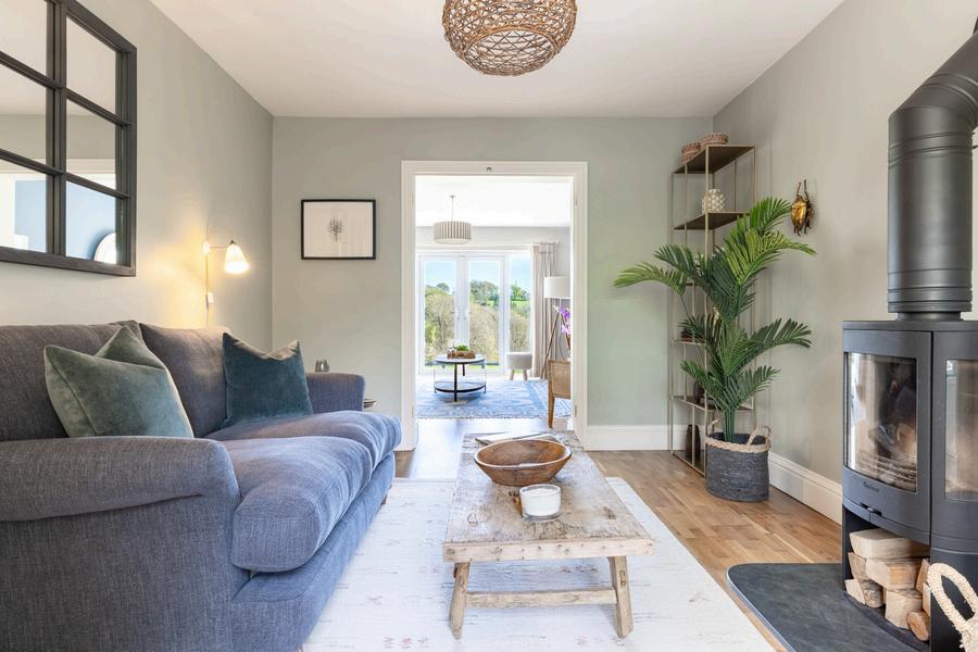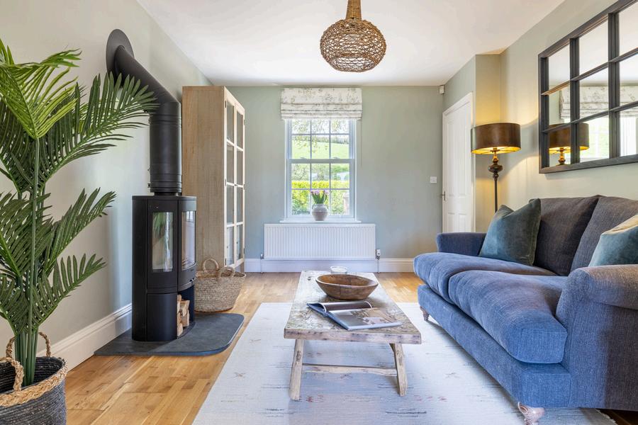 The ground floor offers wonderfully versatile living. To the front, the main sitting room is both stylish and cosy, centred around a contemporary wood burner - a perfect focal point for quieter evenings This room opens seamlessly into a second reception room, creating a sociable and flexible layout, with French doors leading directly out to the rear garden and drawing the eye immediately to the stunning countryside beyond.