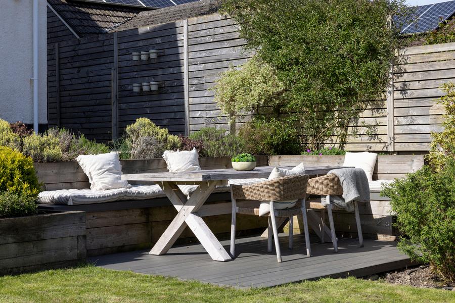 A thoughtfully designed decked seating area creates a perfect space for entertaining and relaxing, with sleeper-edged raised beds and herb planting adding both character and practicality Positioned to capture the evening sun, it is an idyllic spot to unwind at the end of the day A substantial storage shed provides excellent additional space, making this a highly practical as well as beautiful outdoor setting