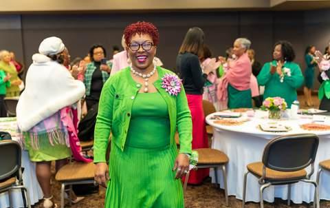 Soror Joni embodies the spirit of Alpha Kappa Alpha Sorority, Incorporated® with her impeccable style, always polished and well-dressed, and her dedication to service, stepping in to help whenever she can She connects our chapter with valuable resources and support whenever needed As a legacy member and Silver Star, she proudly keeps her pinkie up!