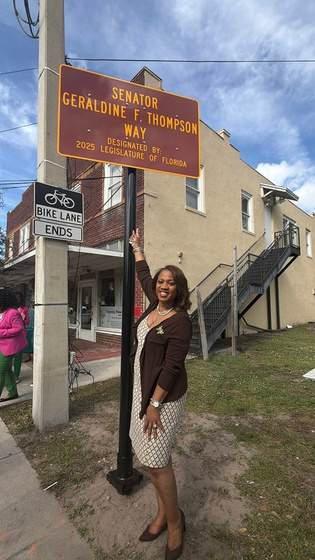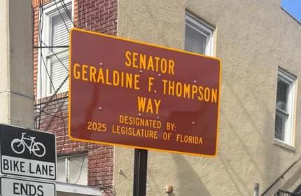 A new street sign in downtown Orlando now commemorates the life and legacy of State of Florida Senator Geraldine F. Thompson. The city has designated a portion of West South Street as “Senator Geraldine F Thompson Way,” a meaningful tribute placed directly in front of the Wells’Built Museum of African American History and Culture, which she founded in 2001. Thompson saved the historic Wells’Built Hotel from demolition and transformed it into a museum preserving the stories, culture, and civil rights history of Black Floridians