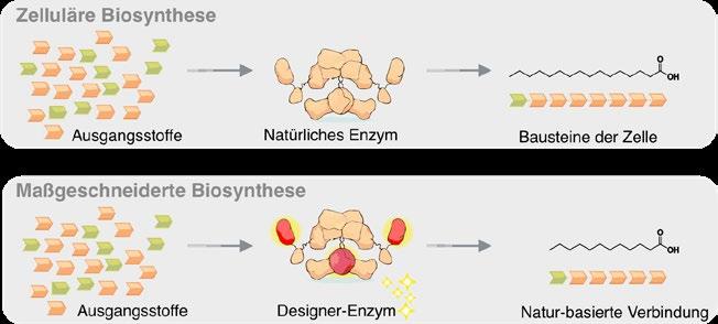 res Fliessband, das in allen Lebewesen Fettsäuren aufbaut. «In dieser Funktion ist die FAS eines der wichtigsten Enzyme des Stoffwechsels einer Zelle und wurde für diese Aufgabe über viele Millionen Jahre optimiert», erklärt Grininger. Das Enzym produziert normalerweise Palmitinsäure, eine Fettsäure mit 16 Kohlenstoffatomen, die als Baustein für Zellmembranen und Energiespeicher dient. Die Industrie benötigt jedoch vor allem kürzere Varianten mit 6 bis 14 Kohlenstoffatomen – genau diejenigen, die derzeit aus den problematischen Pflanzenölen gewonnen werden. Der entscheidende Vorteil der neuen Methode: «Grundsätzlich liegt unser Vorteil in der sehr präzisen Kontrolle der Kettenlänge. Wir können theoretisch jede Kettenlänge machen und zeigen das am Beispiel der C12-Fettsäure,