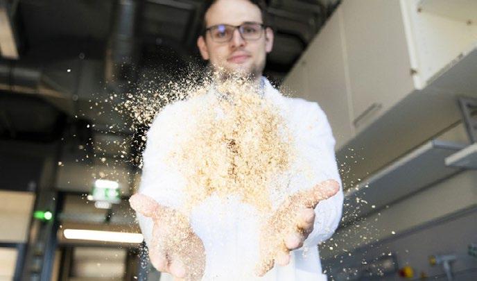 Parallel dazu arbeitet Bartas Forschungsgruppe immer auch an neuen Syntheseund Katalysemethoden. «Wir haben eine Methode entwickelt, um bestimmte Moleküle, die sehr schwer herzustellen sind, wie Benzoaxine, in nur 3 Schritten aus Holzspänen oder Hackschnitzeln zu gewinnen. Aus Erdöl bräuchten wir 13 Schritte.» 13 eingesparte Syntheseschritte: Das verbessert nicht nur die Energiebilanz, sondern auch den E-Faktor (Environmental Factor). Die in der grünen Chemie wichtige Masszahl gibt an, wie viele Einheiten Abfall pro Einheit Endprodukt bei der Produktion anfallen, etwa Lösungsmittel, verbrauchte Katalysatoren oder Nebenprodukte chemischer Prozesse. Je kleiner der E-Faktor, umso umweltfreundlicher und effizienter ist der Prozess und das Produkt. In der Phar-