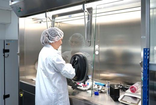 Die Anlage ermöglicht parallele und serielle Prüfungen, verkürzt Rüstzeiten und erhöht die Flexibilität im Laboralltag deutlich. Ihr spezielles Luftführungssystem erzeugt einen Reinlufttrennschleier, der kontaminierte Luft gezielt absaugt und so Produkt-, Personenund Raumschutz gewährleistet – selbst beim Umgang mit hochaktiven Substanzen. Für Ophtapharm ist die Werkbank damit weit mehr als ein Laborgerät: Sie ist das stabile Fundament einer sicheren, leistungsfähigen Sterilproduktion.