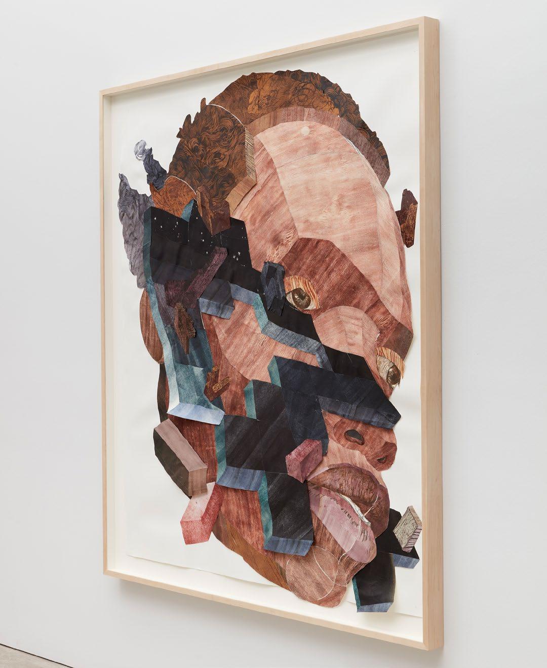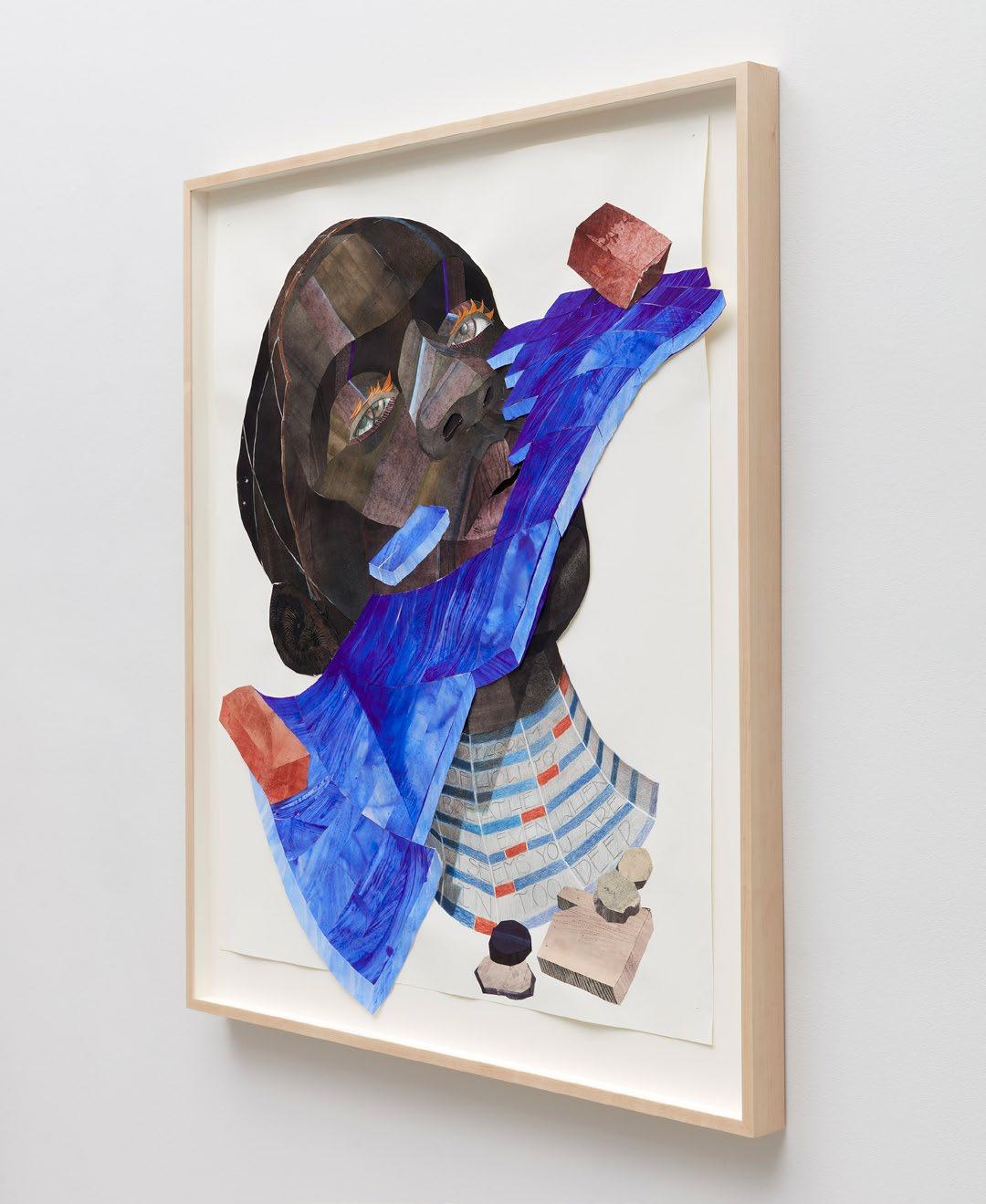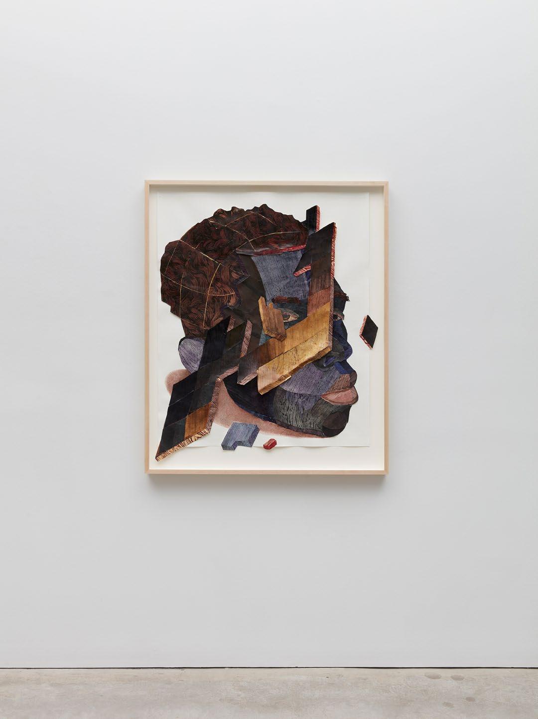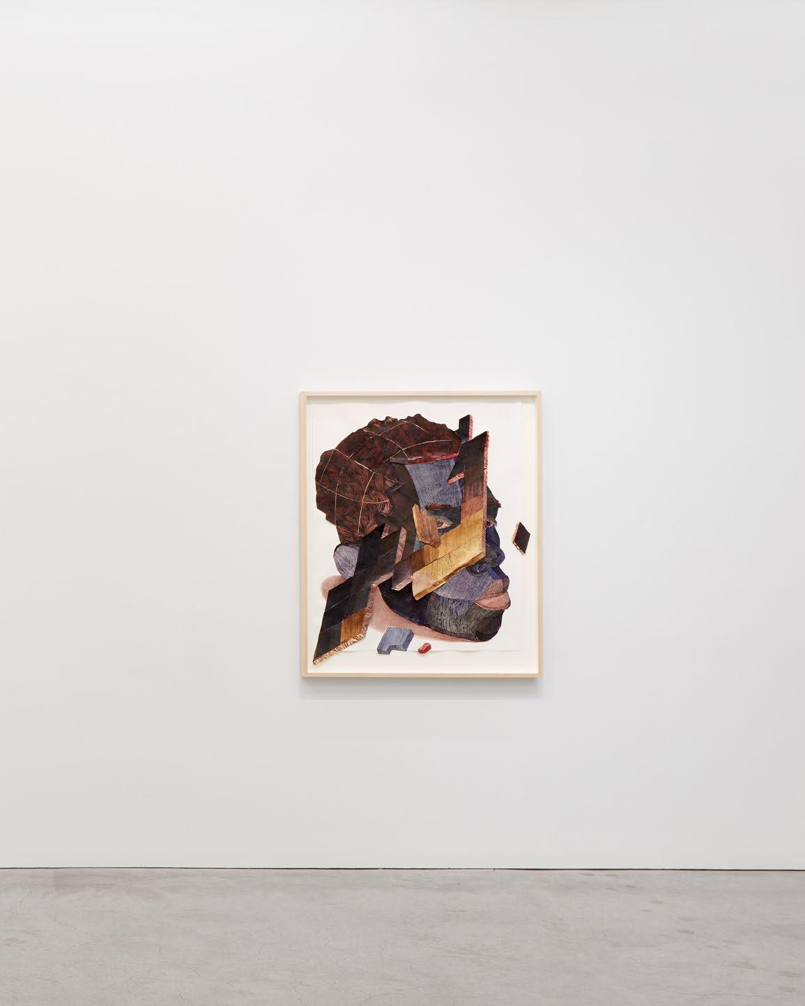 In his practice, Yashua Klos explores how identity—particularly Black identity—is constructed as a means of survival, adaptation, and empowerment. Proposal for a Monument features a selection of recent large-scale woodblock print collages. In this body of work, Klos revisits imagery he first began exploring in 2015, of dimensional portrait busts intersected by grids, planes, wood, and concrete blocks. The integration of building materials and architectural elements into the collages alludes to the built environment, and specifically to the urban area of Klos’s hometown, Chicago—a city indelibly shaped by its signature street grid as well as by legacies of segregation and housing discrimination. The anonymized subjects of Klos’s collages are placed in constant negotiation with the material symbols of these unjust systems, entangled within their wreckage yet at times breaking through or reclaiming it as scaffolding to support the construction of something new.