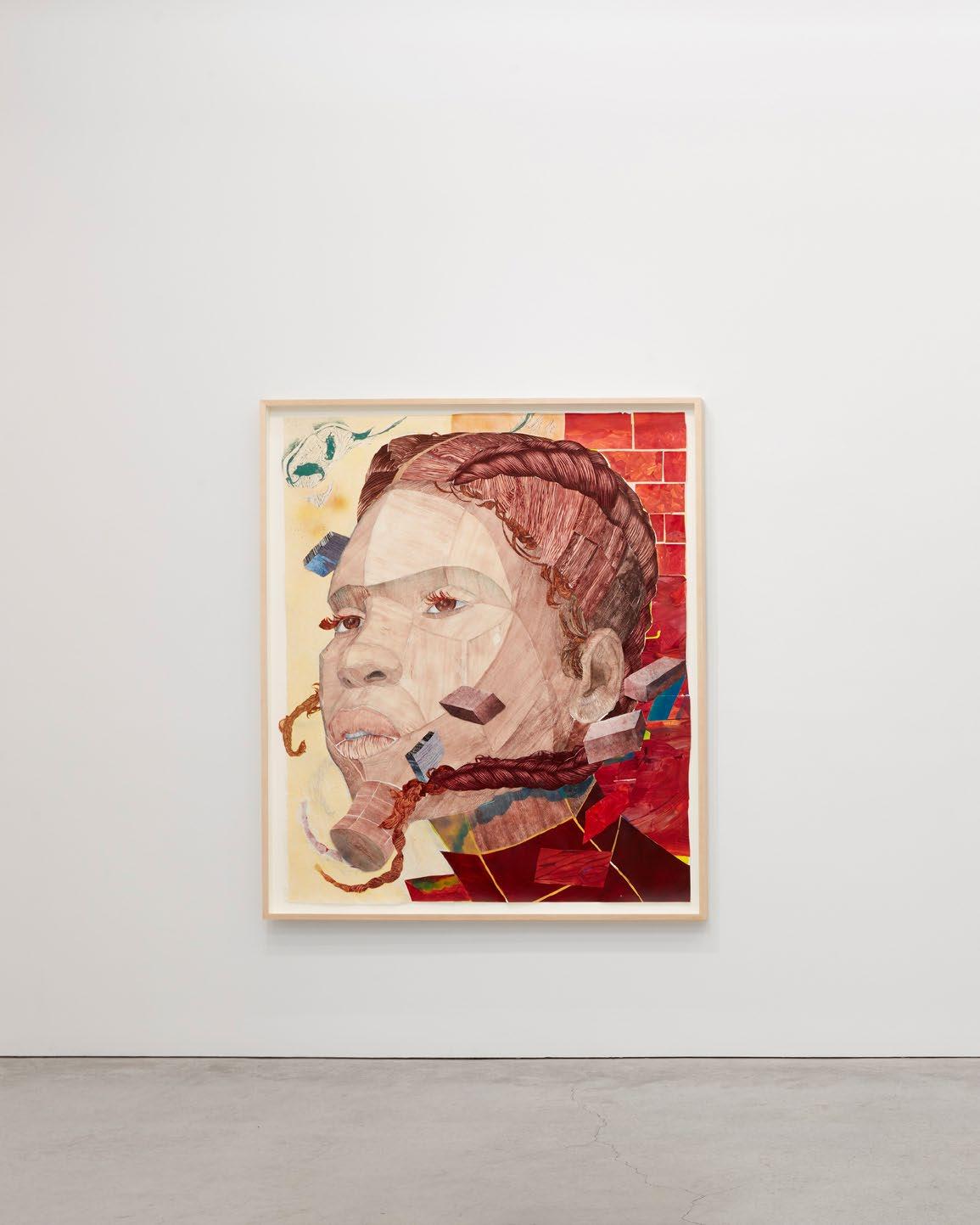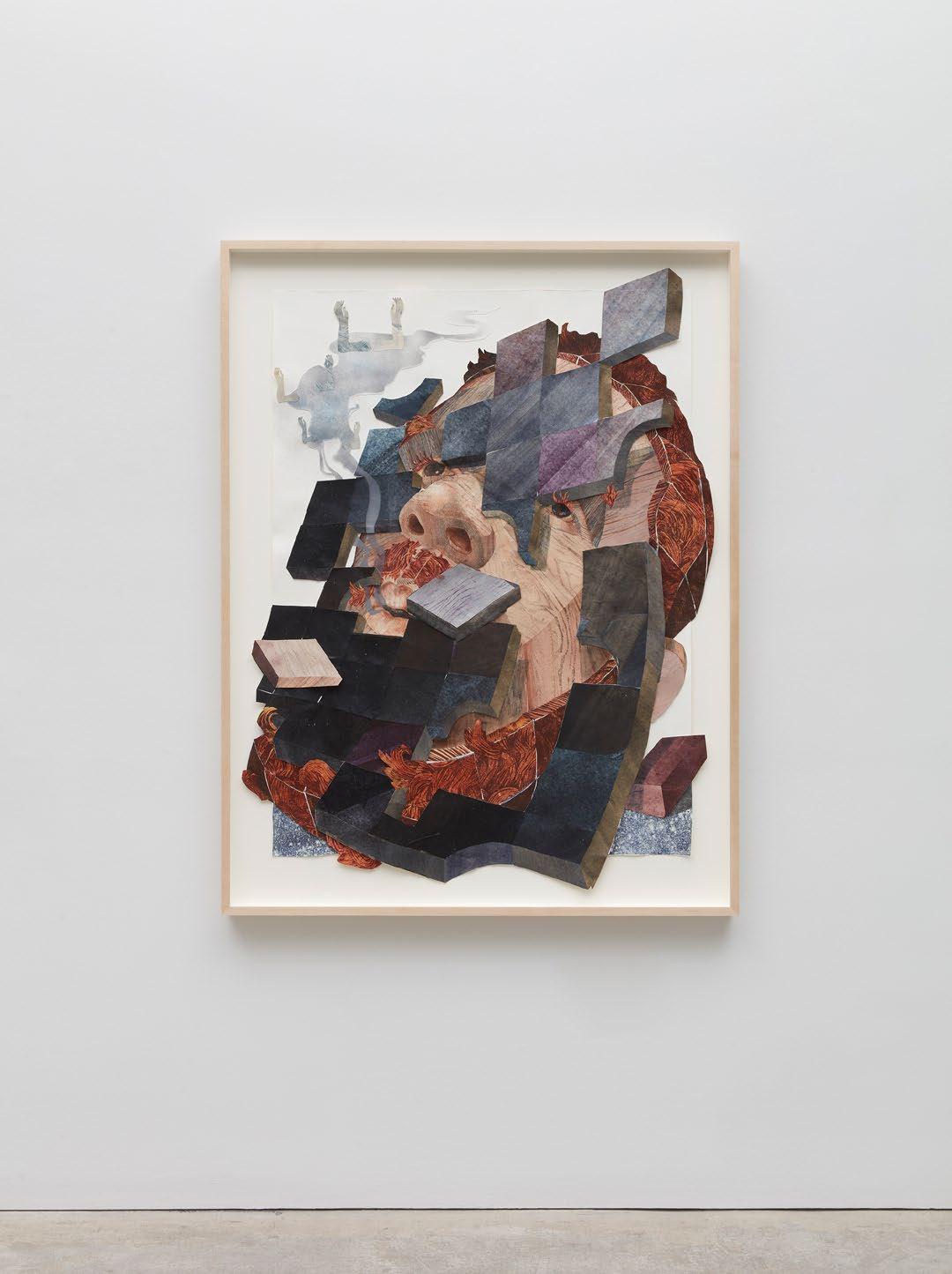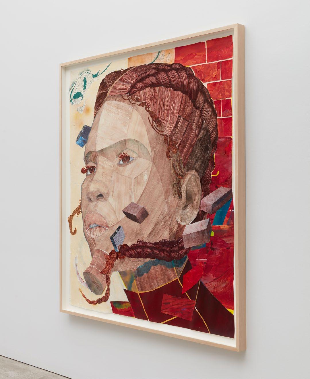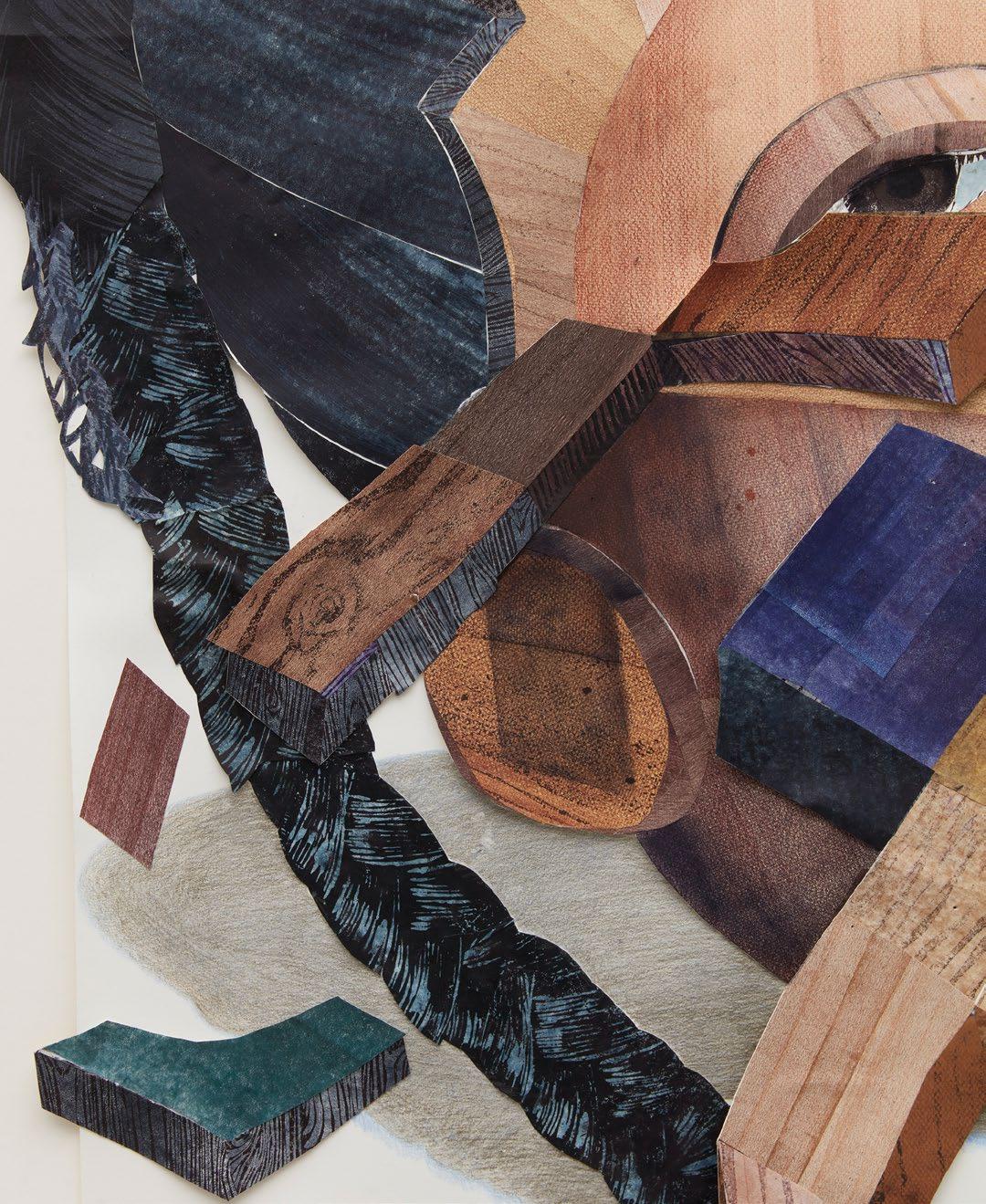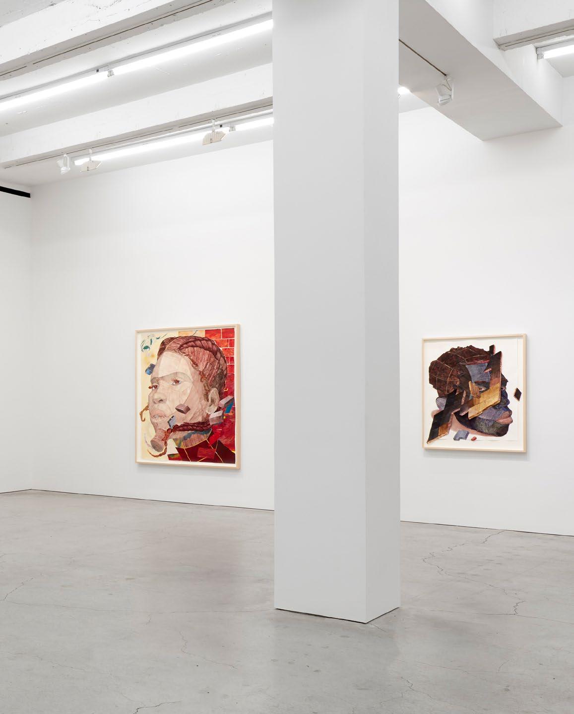 In his practice, Yashua Klos explores how identity—particularly Black identity—is constructed as a means of survival, adaptation, and empowerment. Proposal for a Monument features a selection of recent large-scale woodblock print collages. In this body of work, Klos revisits imagery he first began exploring in 2015, of dimensional portrait busts intersected by grids, planes, wood, and concrete blocks. The integration of building materials and architectural elements into the collages alludes to the built environment, and specifically to the urban area of Klos’s hometown, Chicago—a city indelibly shaped by its signature street grid as well as by legacies of segregation and housing discrimination. The anonymized subjects of Klos’s collages are placed in constant negotiation with the material symbols of these unjust systems, entangled within their wreckage yet at times breaking through or reclaiming it as scaffolding to support the construction of something new.