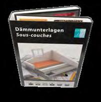 ** Nutzbeläge, welche bereits über einen eigenen Trittschall verfügen, müssen hinsichtlich der Eignung von Trittschallunterlagen geprüft werden. Les revêtements utiles qui disposent déjà de leur propre bruit de choc doivent être examinés quant à l›adéquation des sous-couches acoustiques.