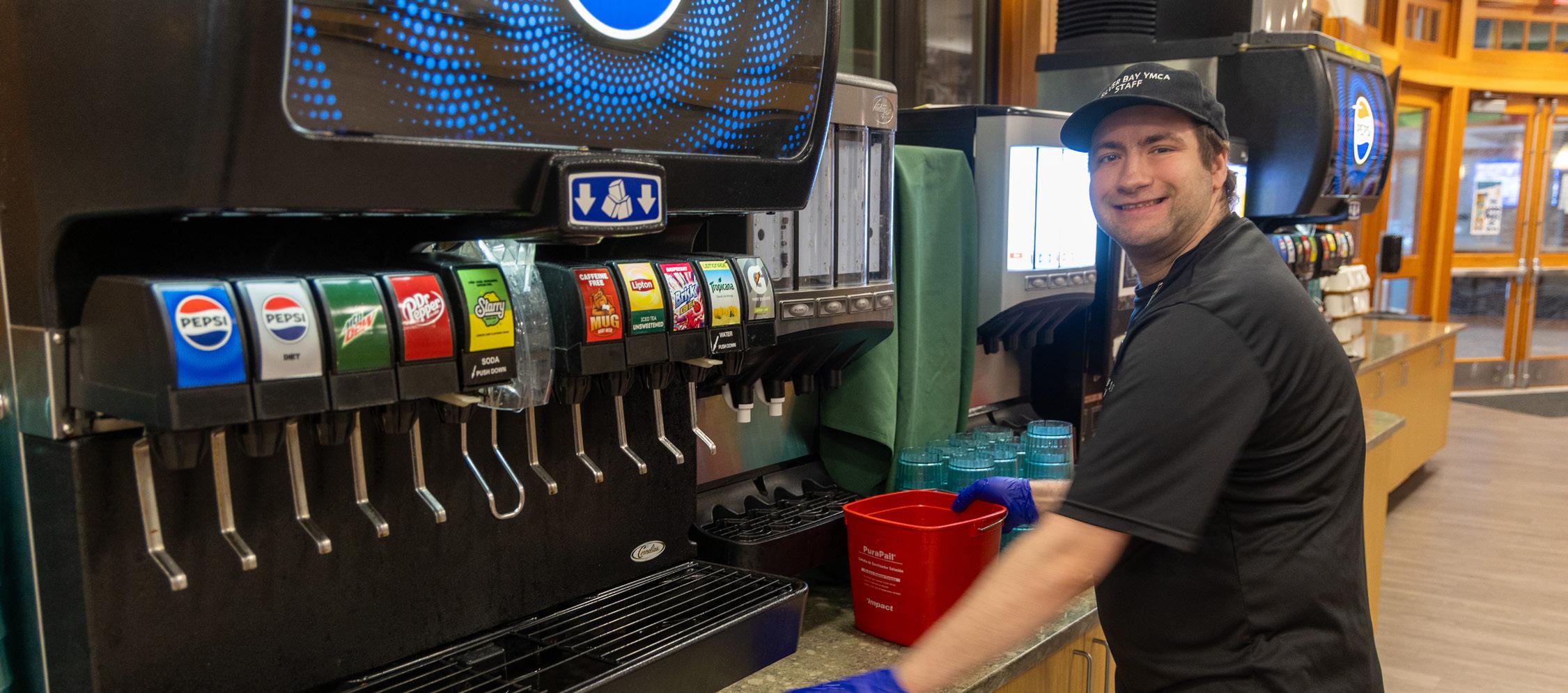 Branden Guerin working in the dining hall.