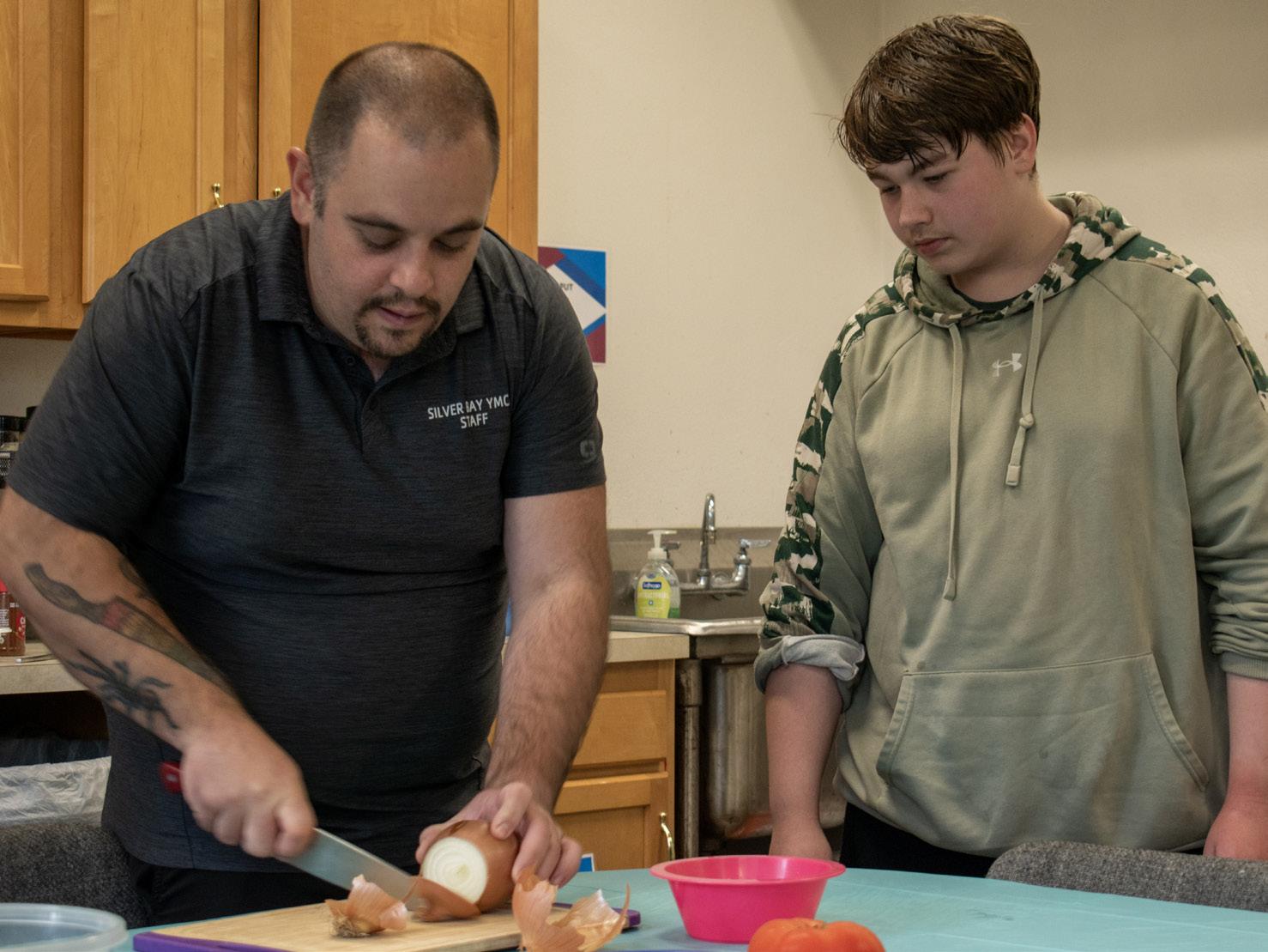 Anthony Basile teaching a cooking lesson at the Teen Center.