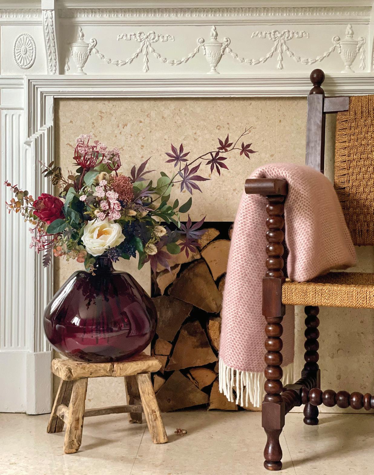 Rather than stripping rooms back, she recommends subtle spatial shifts that allow daylight to travel more freely — arranging furniture to honour both the landscape and the hearth, and letting the room respond to how it’s actually lived in during the season.