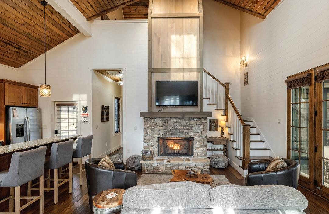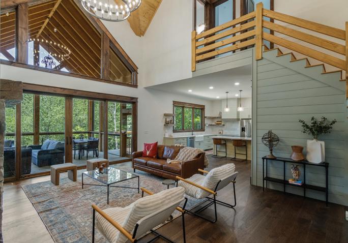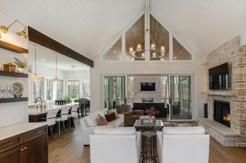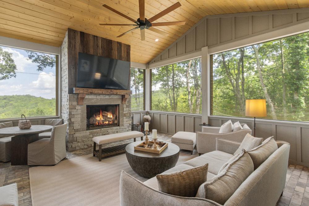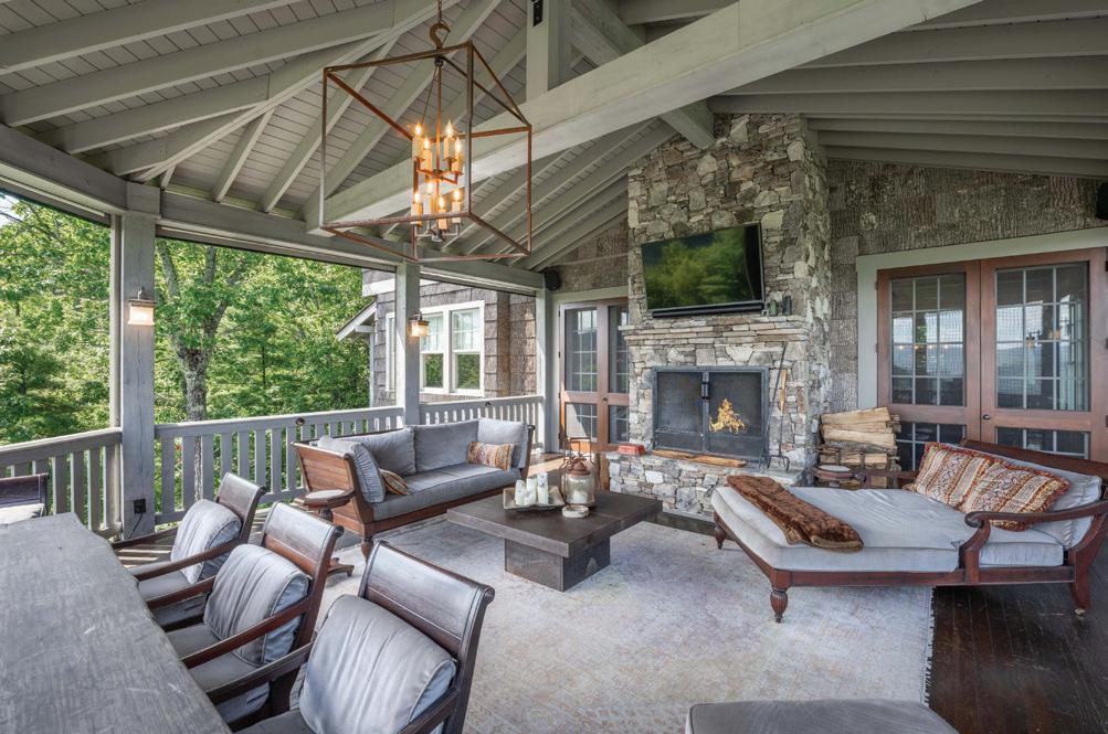 “Mountain homes closed for the winter come alive with the coming of spring,” says Deneece. “Creating seating vignettes that take in the view — while still cozy to the warmth of the fireplace — enlivens the heart of the home and embraces its intimacy.”
