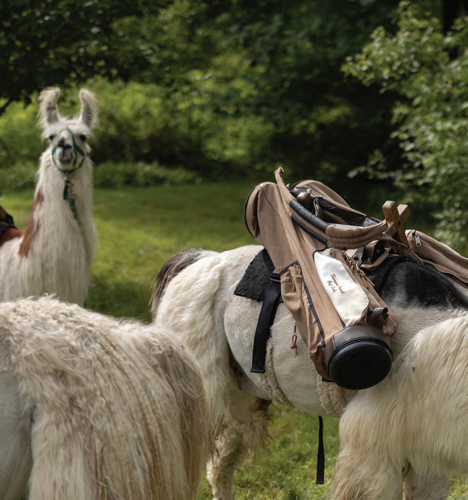 With 14 llamas currently in operation and four llama babies in training, Mark English continues expanding his unique mountain enterprise. From that frustrated fifth-grade caddie emerged a man who’s found his calling, bringing joy through his passions. His llamas carry golf clubs and hiking gear, comfort sick children, defend against bears, and somehow know exactly what troubled kids need in the wilderness.