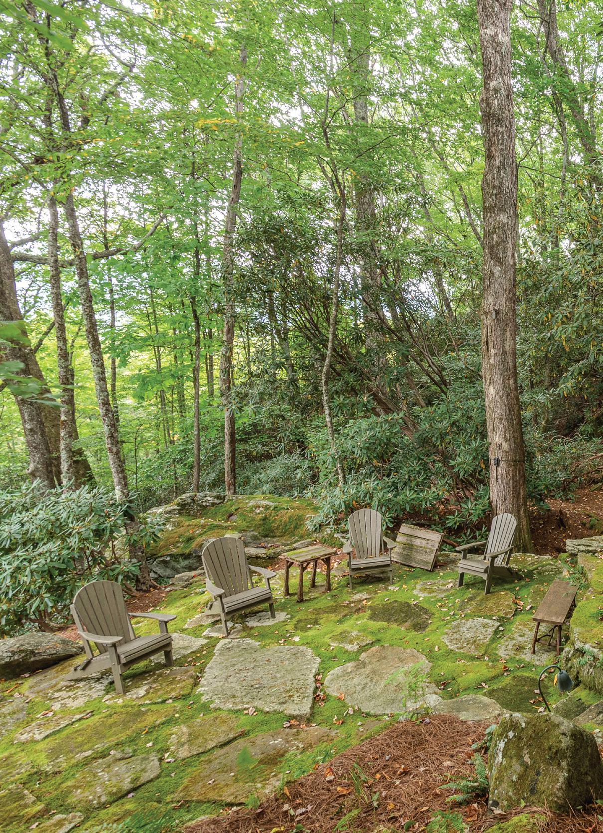 Her preferred spring tones mirror the surrounding landscape: “warm corals and soft rusts that echo pineneedle groundcover, greens ranging from bright chartreuse moss to the deep green of rhododendrons, and subtle blues that reflect the hazy Blue Ridge mountains.”