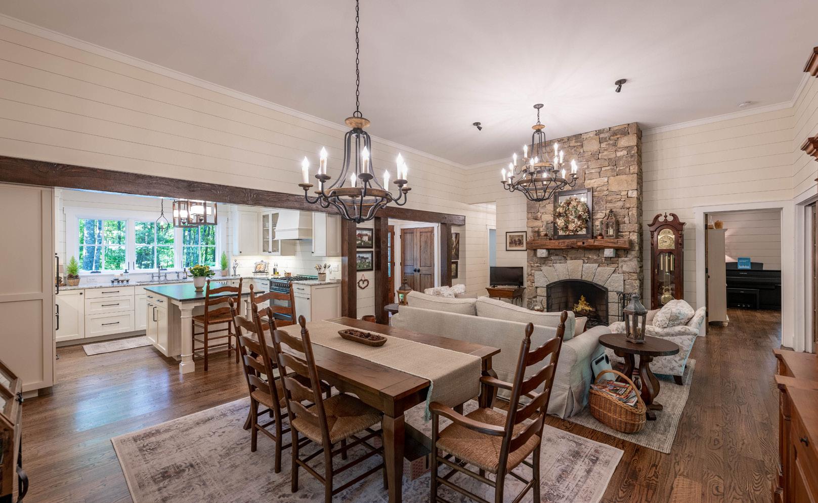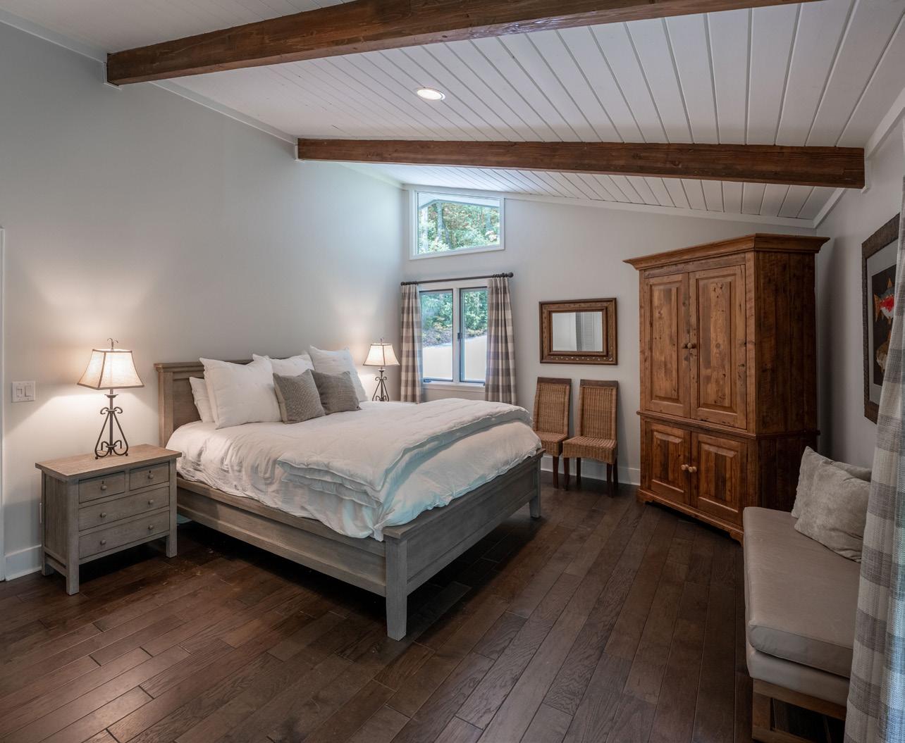 Introducing Happy Bear Cove, a newly renovated and move-in ready, one-level cozy lakefront cottage located in the prestigious Lake Toxaway Estates. This charming and idyllic property offers the perfect retreat for those seeking tranquility and natural beauty. Step inside to discover the inviting interior, featuring a stone wall entry and newly installed hardwood floors in a trio of Hickory, Oak, and Maple.