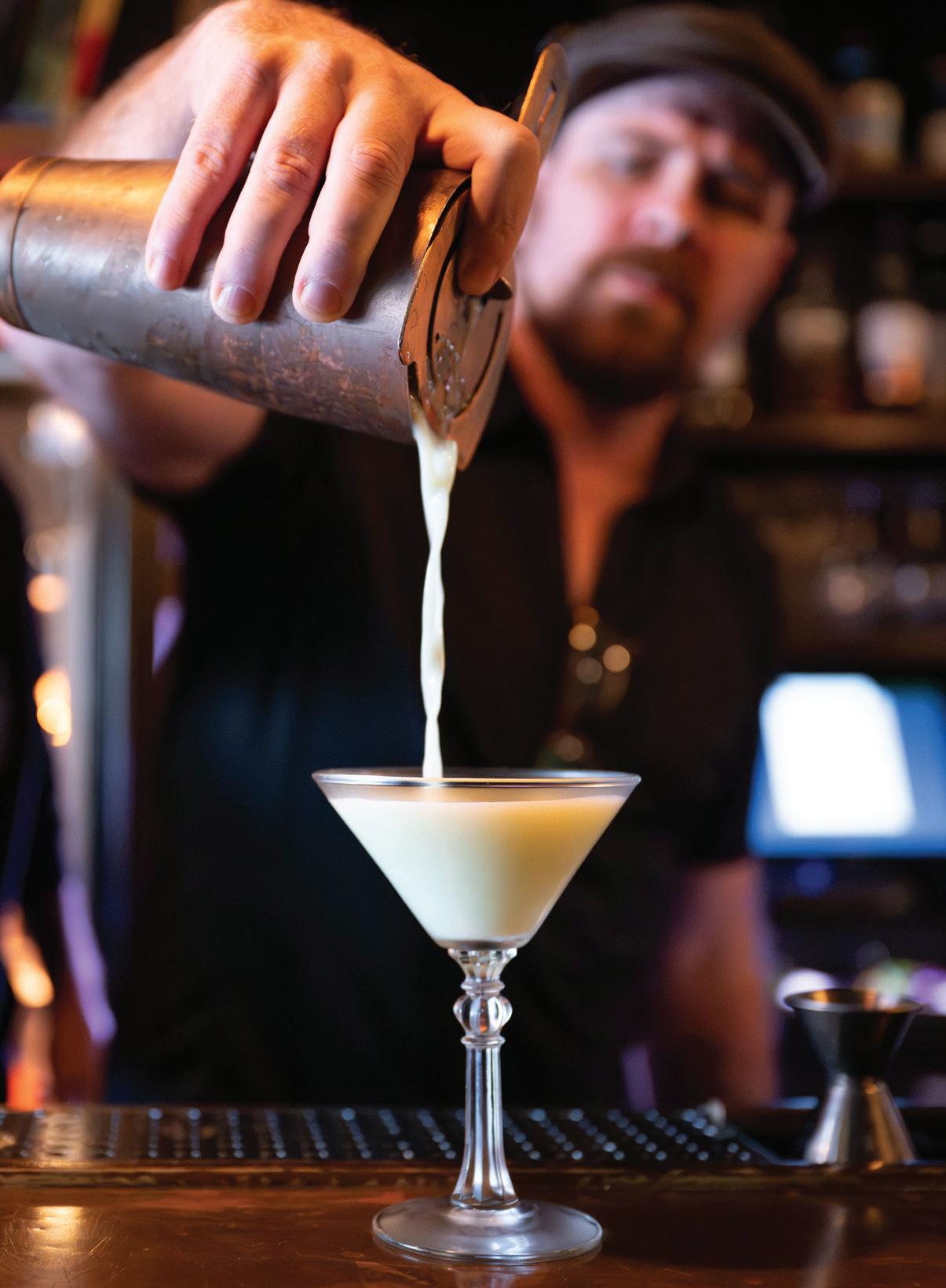 LEFT: RAISE YOUR SPIRITS INSIDE WITH A COCKTAIL CRAFTED BY RALLY’S AWARD-WINNING MIXOLOGIST AND A DELICIOUS NEAPOLITAN-STYLE PIZZA, ALL WHILE WATCHING THE ACTION ON THE INDOOR COURTS. PHOTO BY AMANDA ANDERSON, COURTESY OF RALLY. RALLYPICKLEBALL.COM
