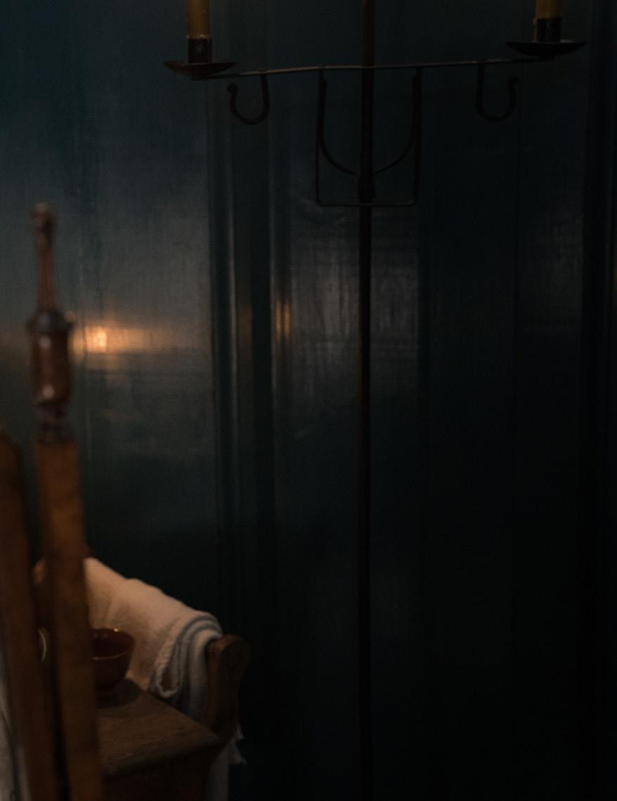 CLAIRE FRASER (CAITRÍONA BALFE) AND JAMIE FRASER (SAM HEUGHAN) IN JAMIE AND CLAIRE'S BEDROOM. OUTLANDER SEASON 4 IS BASED ON GABALDON'S DRUMS OF AUTUMN. PHOTO BY AIMEE SPINKS. STARZ.COM Storied Stays TRAVEL THROUGH TIME WITH DIANA GABALDON NC LIVING SPRING 2024 137