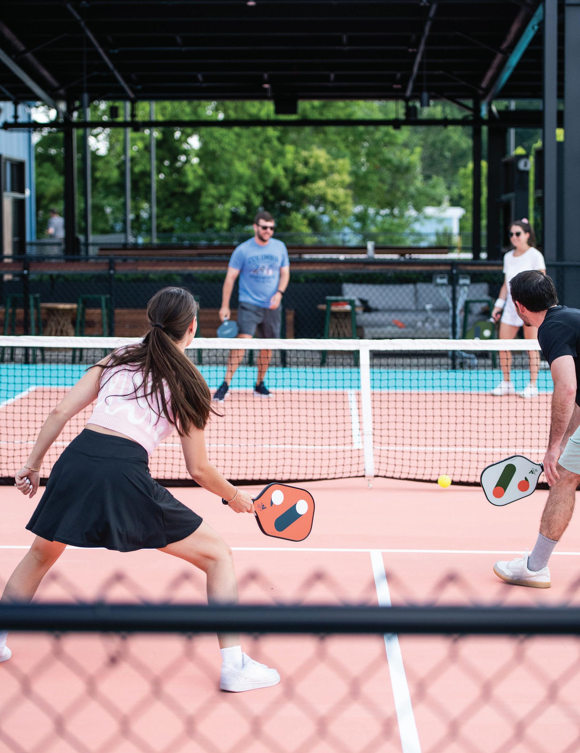 RALLY’S OUTDOOR COURTS ARE THE PERFECT PLACE FOR A FRIENDLY MATCH. PHOTO BY AMANDA ANDERSON, COURTESY OF RALLY. RALLYPICKLEBALL.COM