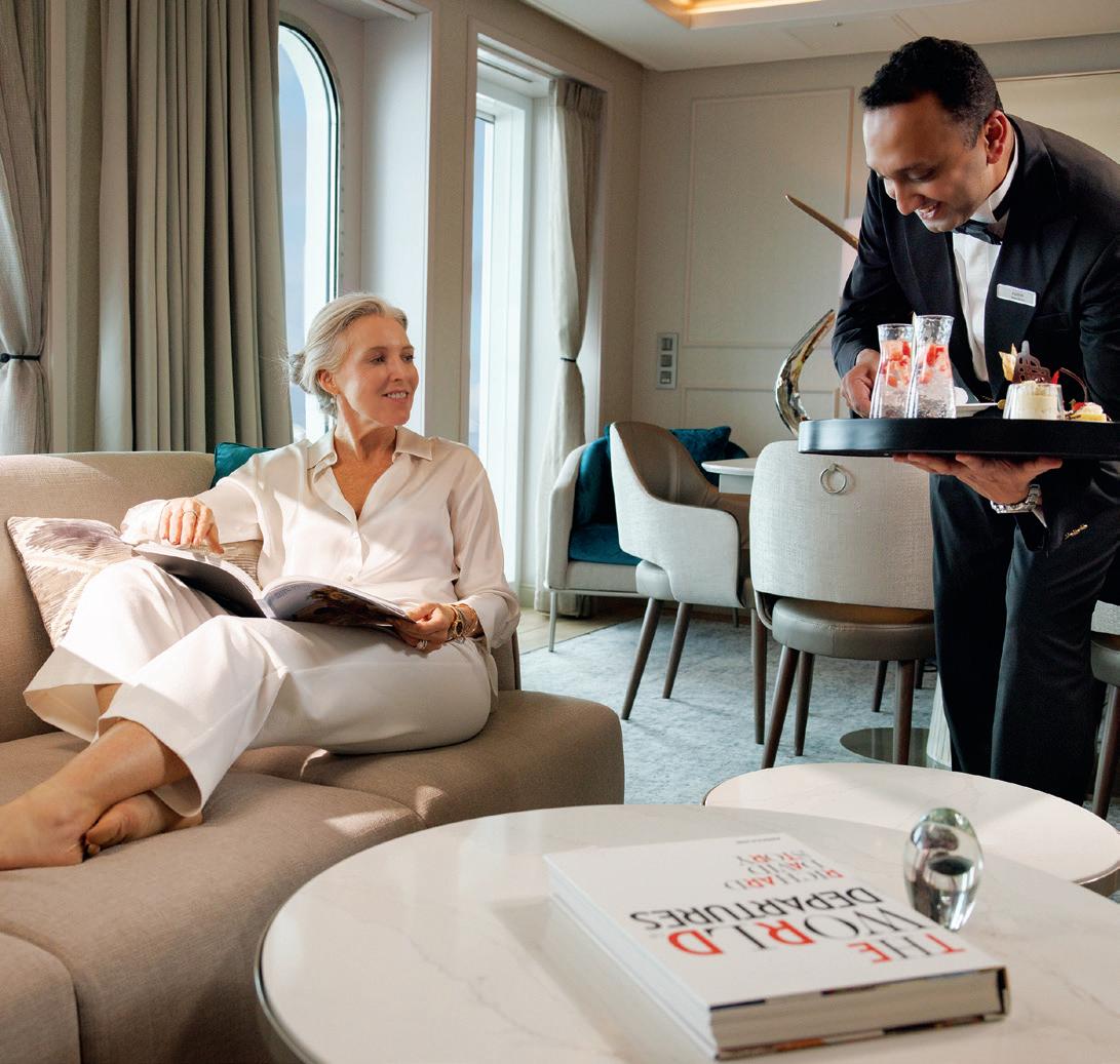 • Getränke in der Suite und auf dem gesamten Schiff, inklusive Champagner, erlesener Weine und Spirituosen, Soft-Drinks und mehr