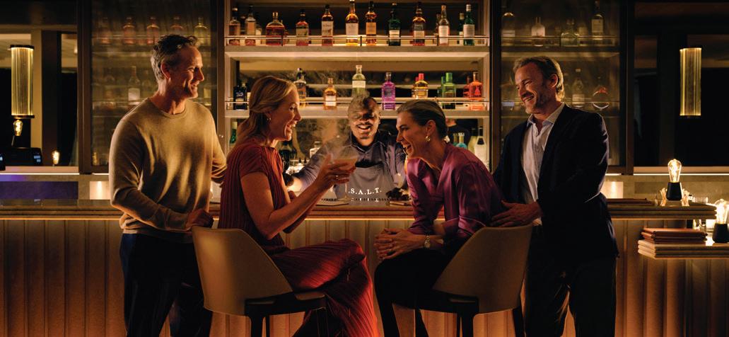 S.A.L.T. Bar crafts cultural connections through expertly prepared cocktails that tell the story of each region. A welcoming atmosphere invites conversation over regionally inspired and locally sourced libations. Offered complimentary, each perfectly balanced pour serves as your passport to the shores you’re exploring.
