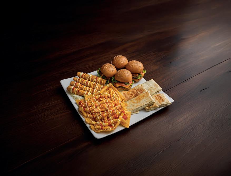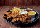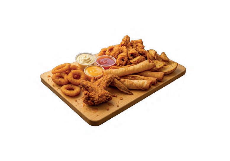 4 alitas fritas, 1 porción de fajitas, 10 aros de cebolla, 5 taquitos de queso, 400 gr de papas fritas + 3 salsas a elegir.