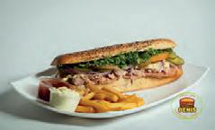Pan artesanal, margarina, salsa pizza, queso frito, tocineta, jamón, queso mozarella, salame, pepperoni, tomate, lechuga, salsa tomate y mayonesa